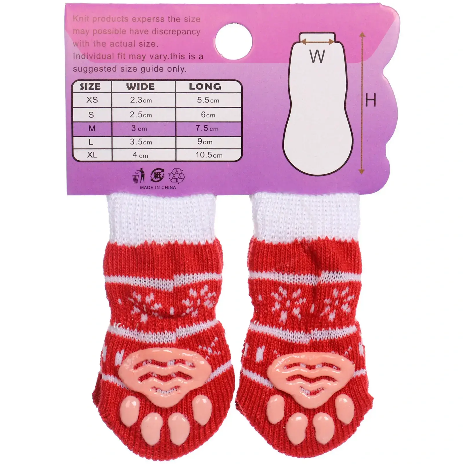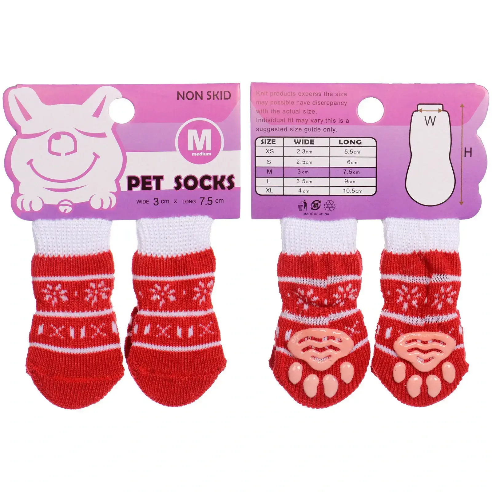 Носочки выполнены из текстиля и силикона, что делает их легкими и удобными для носки. Они легко стираются и быстро сохнут, что позволяет поддерживать их в чистоте. Упаковка включает таблицу размеров, что поможет вам выбрать идеальный размер для вашего питомца.