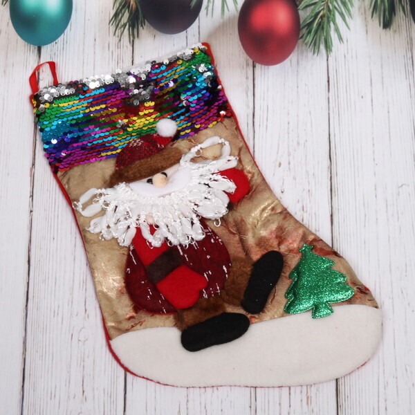 Погрузитесь в волшебство Нового года с носком новогодним CANDY, который станет ярким акцентом вашего праздничного декора. Его уникальный дизайн с изображением Санта-Клауса и блестящей верхней частью создаст атмосферу уюта и радости. Этот носок идеально подходит для заполнения подарками, что сделает ваш праздник еще более запоминающимся.