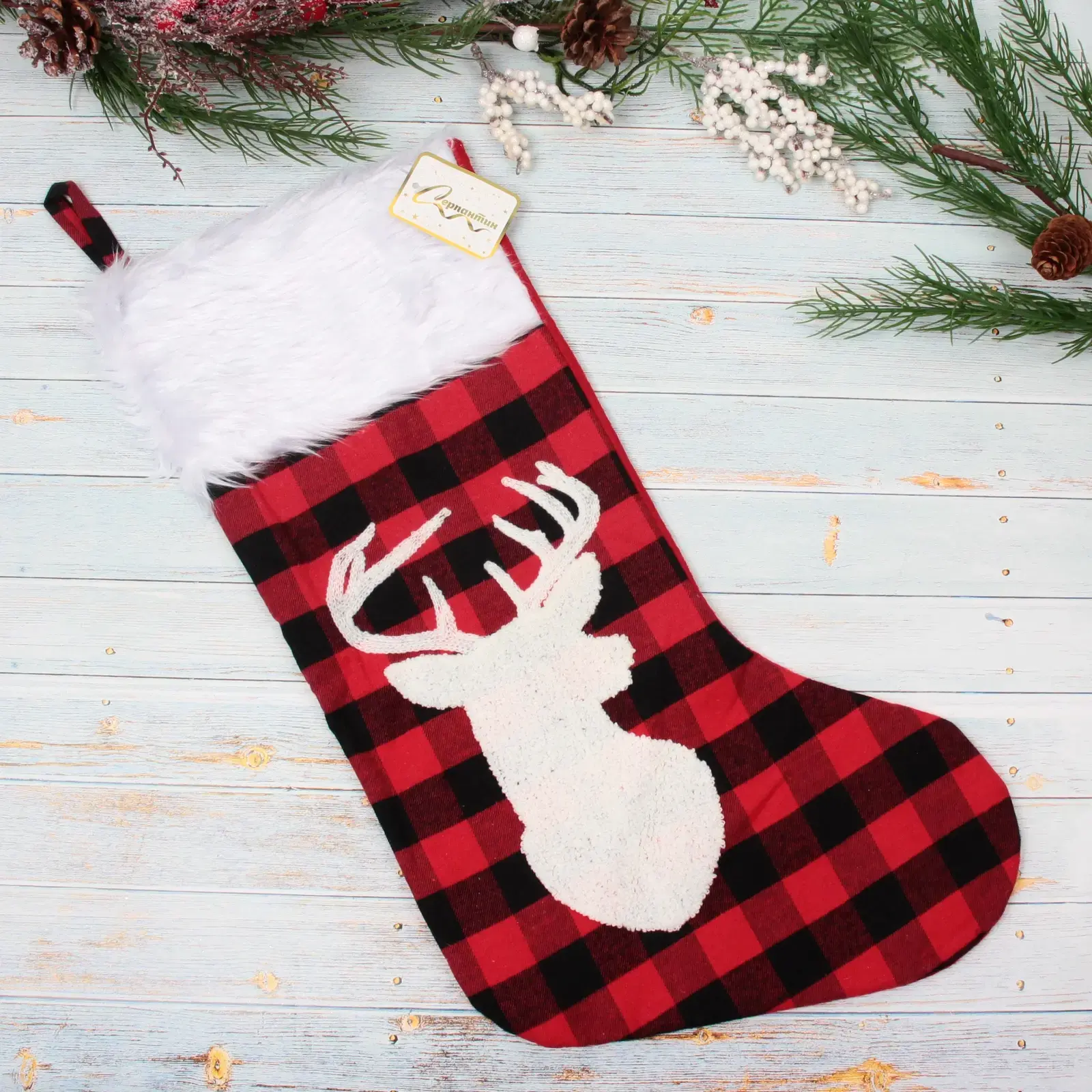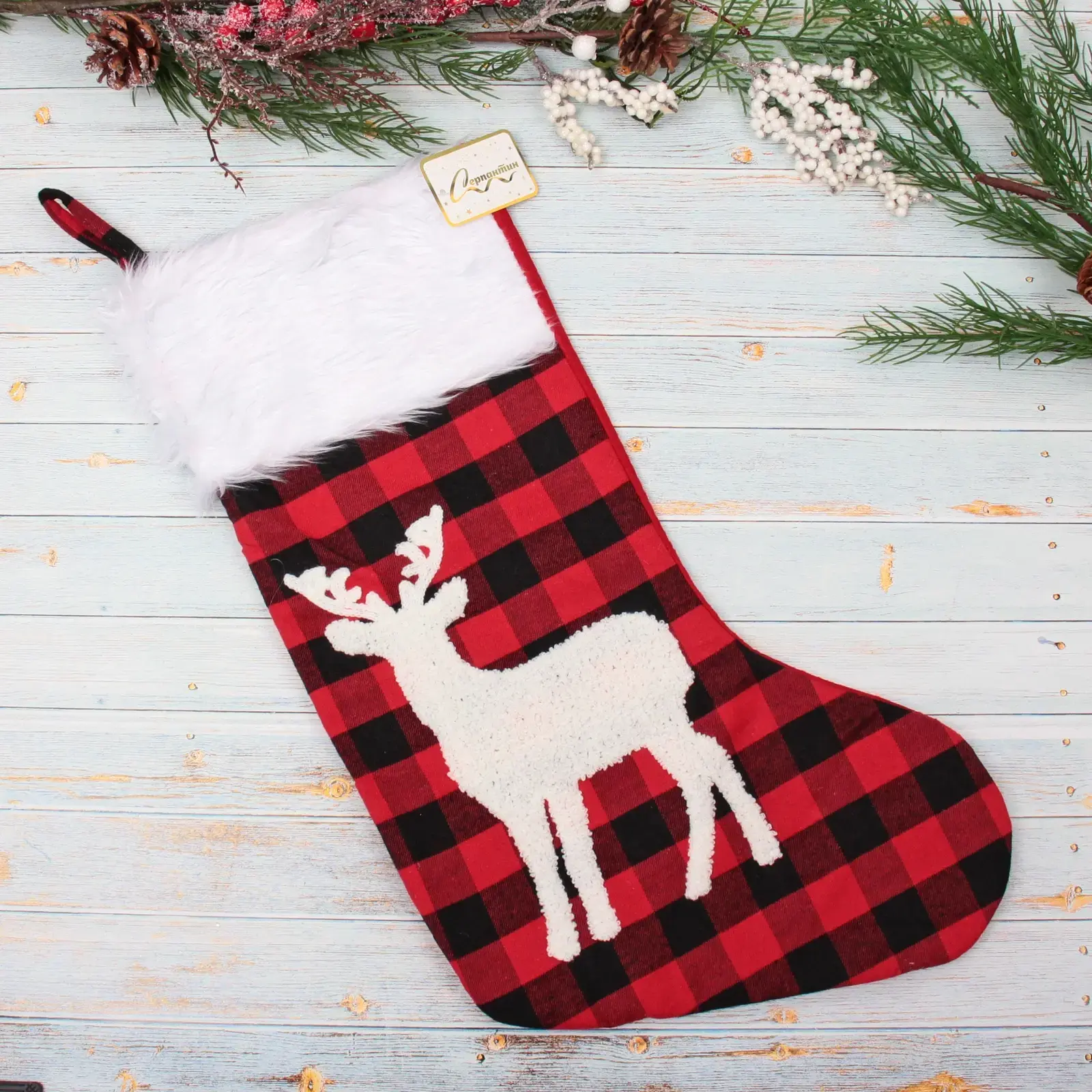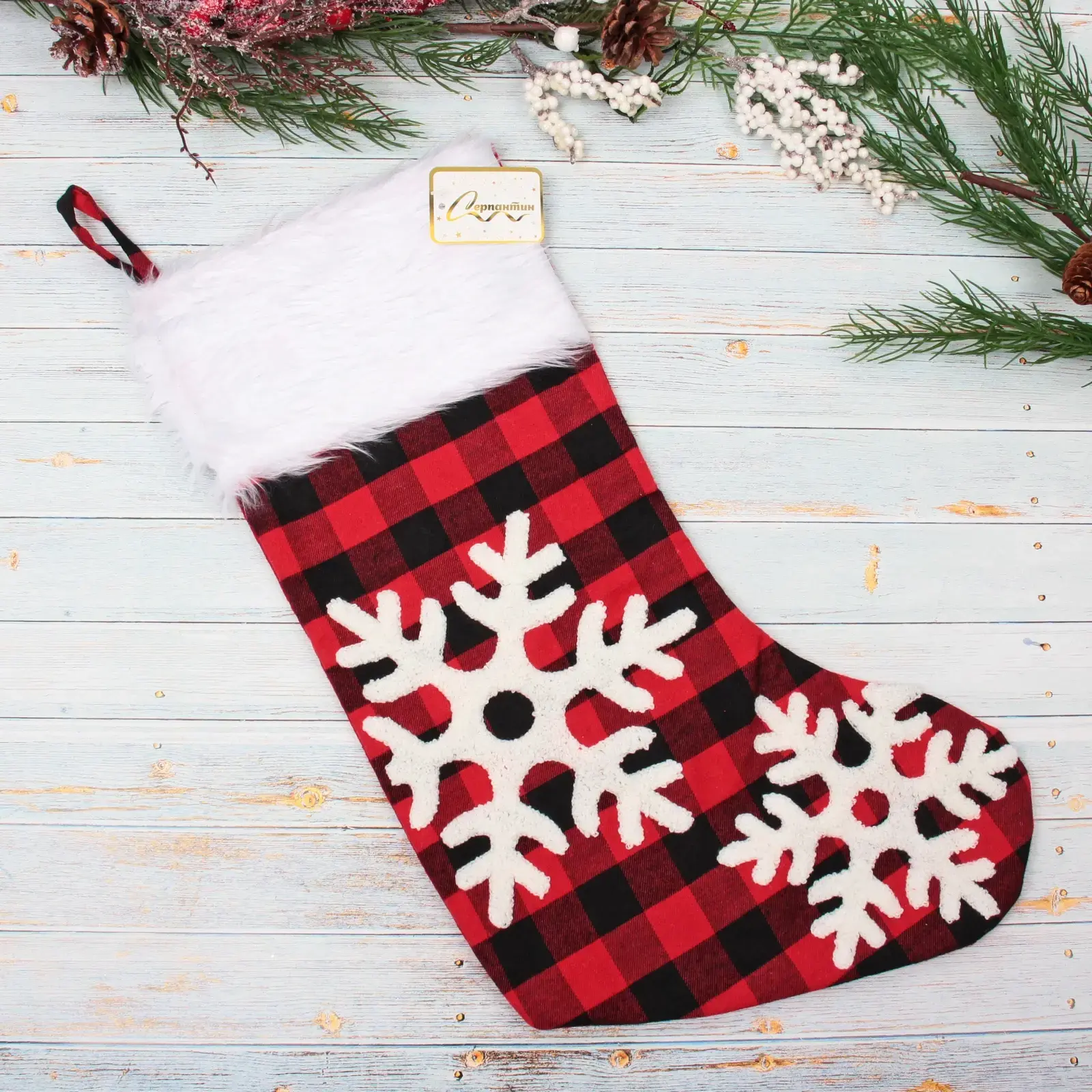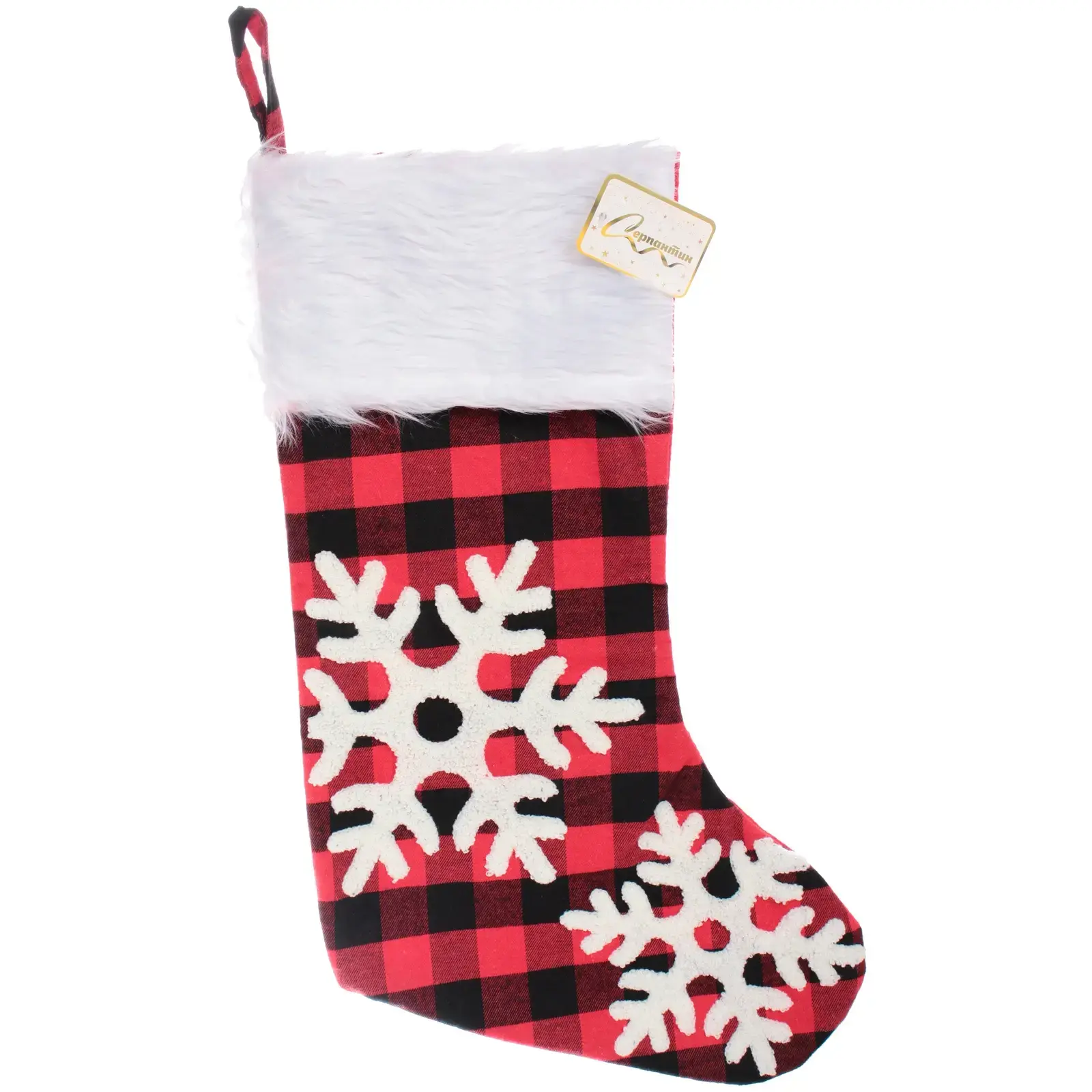 Носок новогодний «Сказочный переполох» — это идеальный элемент для создания волшебной атмосферы в вашем доме. Его яркий красно-черный клетчатый дизайн с белыми снежинками и изображением оленя добавит уюта и праздничного настроения в ваш интерьер. Этот носок не только красив, но и практичен: он достаточно вместителен для того, чтобы наполнить его подарками и угощениями для ваших близких.