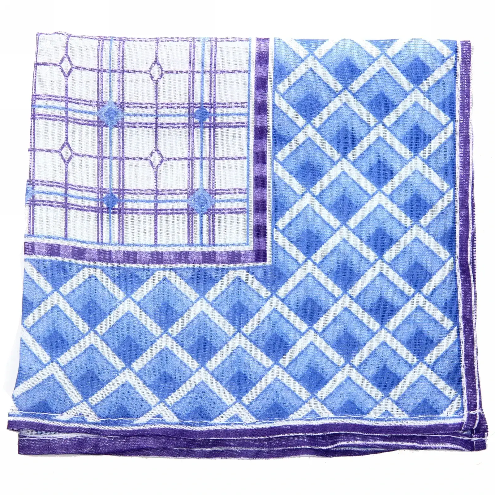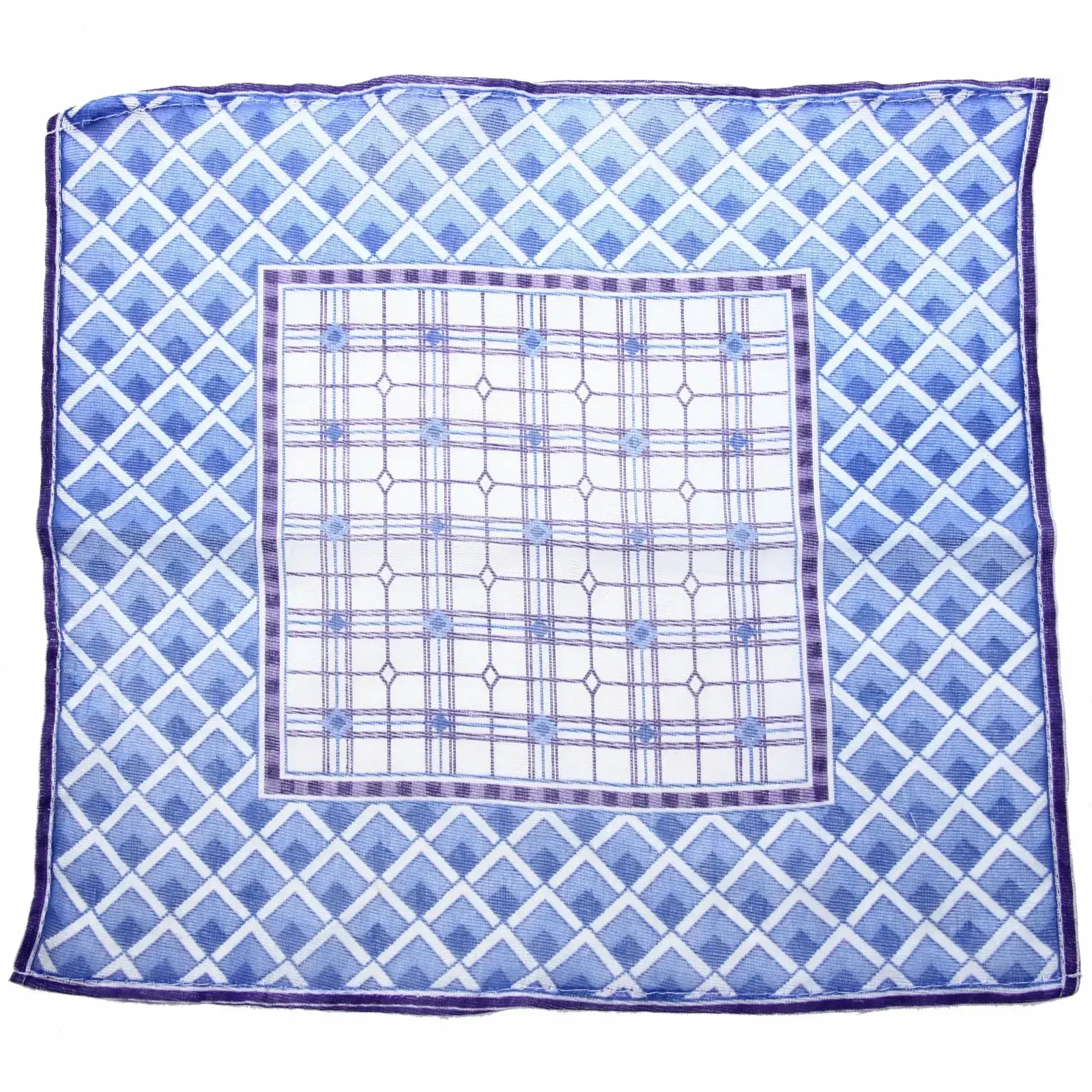 Выбор носового платка — это не просто вопрос практичности, но и стильного акцента в вашем образе. Этот мужской носовой платок размером 28х28 см выполнен из качественного хлопка, что обеспечивает комфорт и долговечность. Его геометрический узор в оттенках синего, белого и фиолетового добавляет изысканности и оригинальности, делая его идеальным аксессуаром для любого случая.