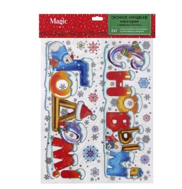 Новогоднее оконное украшение «Magic Time» 2 в 1, ПВХ пленка с глиттером, крепление статикой, 40х25см