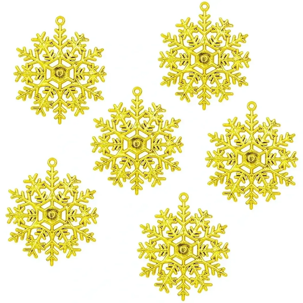 Новогоднее украшение "Снежинки" 6шт, 6см, золотой цвет, пластик