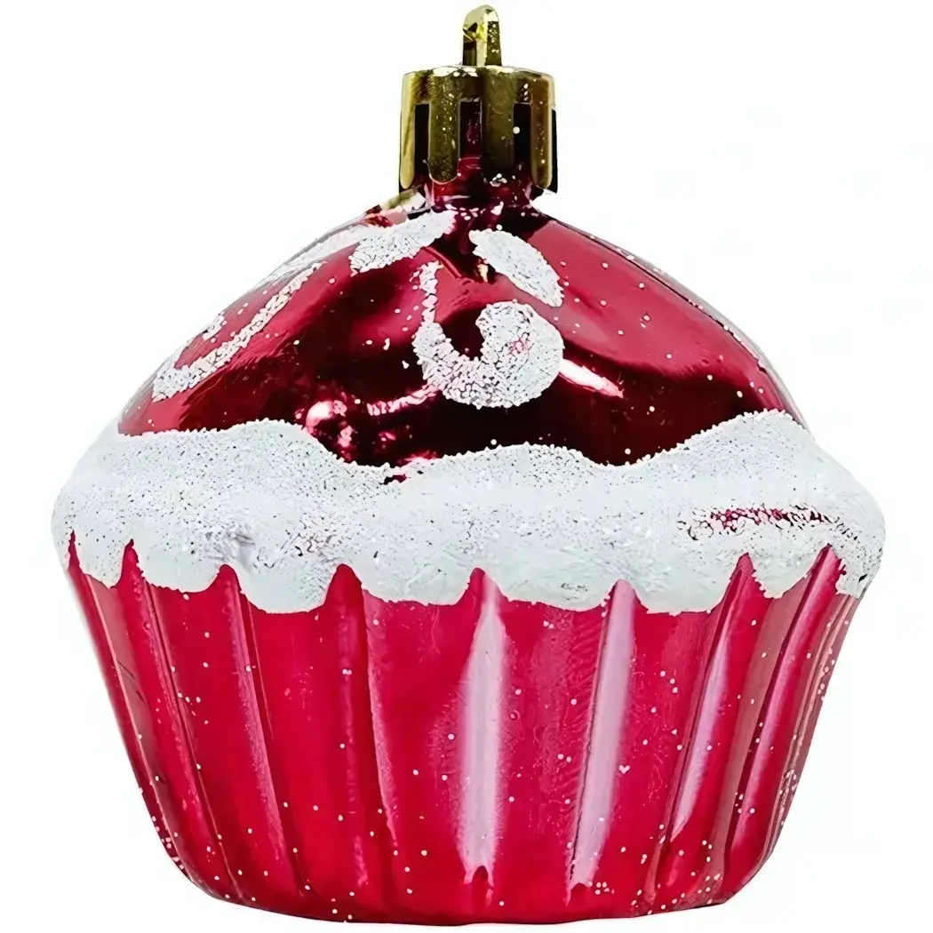 Создайте праздничное настроение с набором новогодних украшений 'Кексы'. Эти очаровательные шарики в форме капкейков станут идеальным дополнением вашей новогодней композиции.