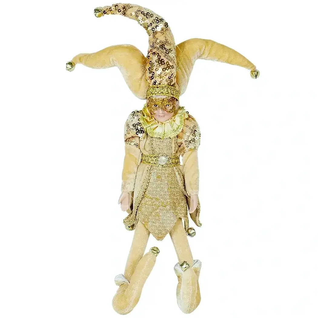 Яркая фигурка в виде шута станет центральным элементом новогоднего оформления. Идеальный размер 45 см позволяет разместить украшение на ёлке, камине или праздничном столе.