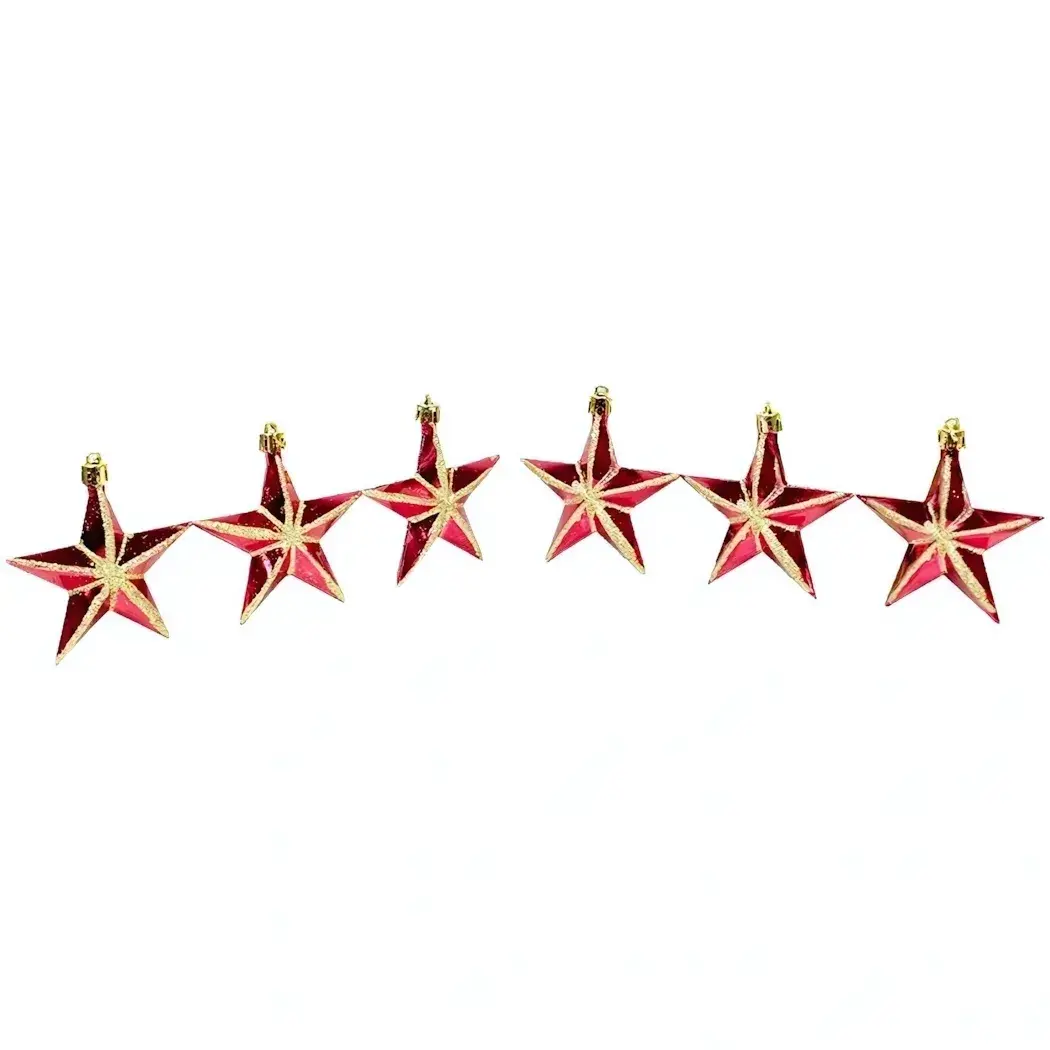 Украшение выполнено из прочного пластика с качественной отделкой. Каждая звезда имеет металлическую петлю золотого цвета для удобного крепления. Дизайн сочетает классическую форму с современным исполнением.