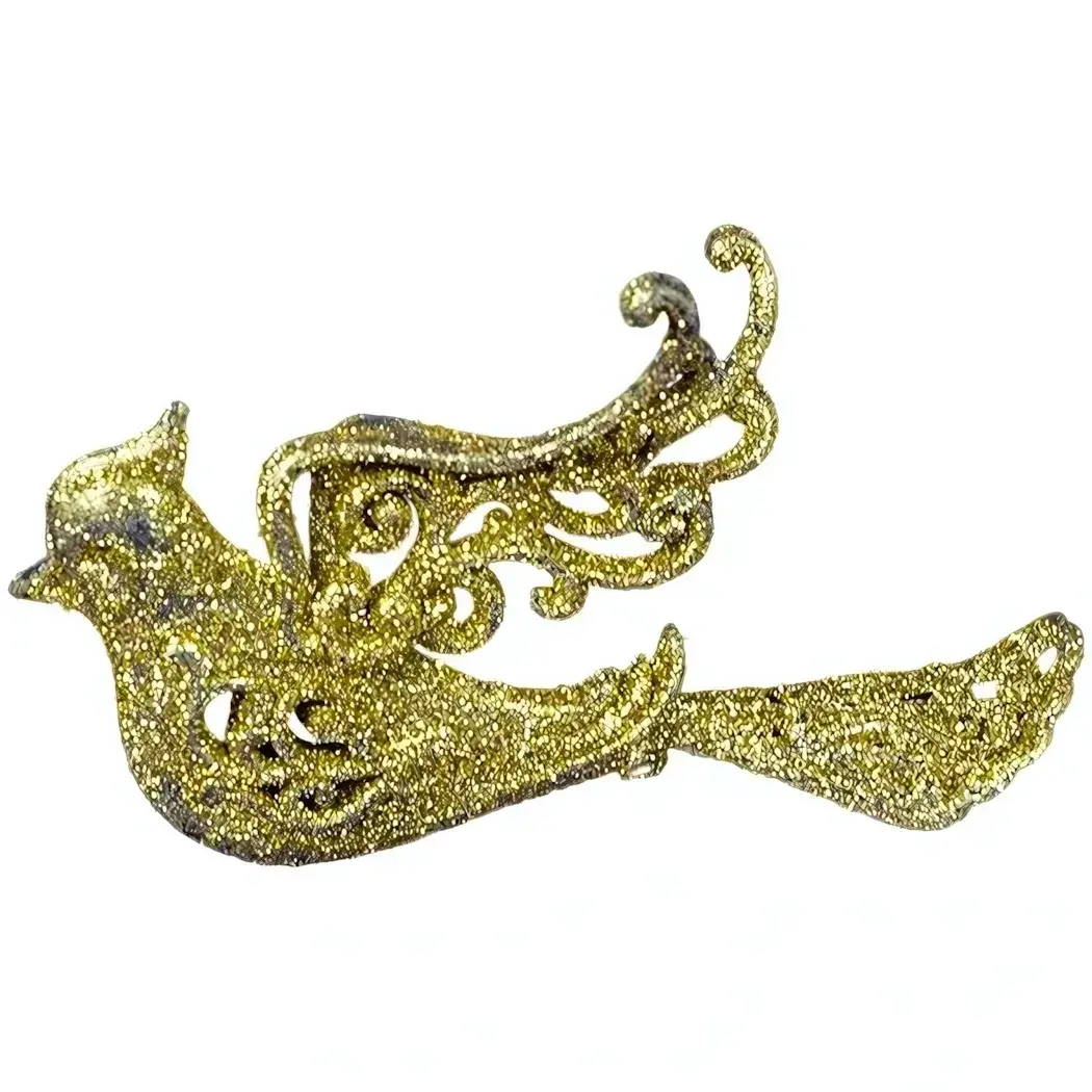 Новогоднее украшение 'Птица' 14см, золотой глиттер, для ёлки и декора