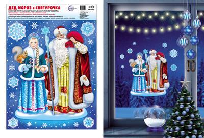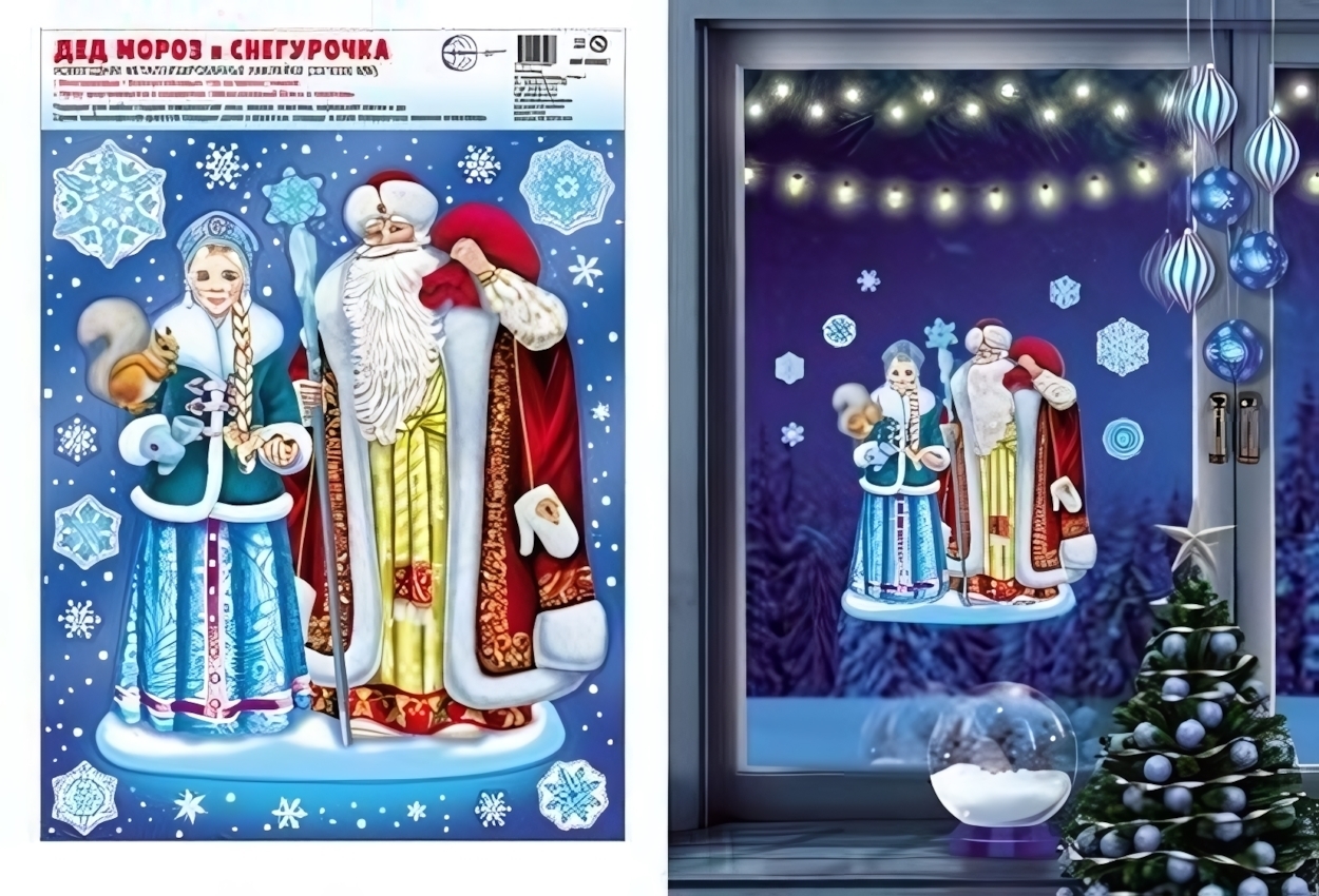 Новогодняя наклейка "Дед Мороз и Снегурочка" для окон