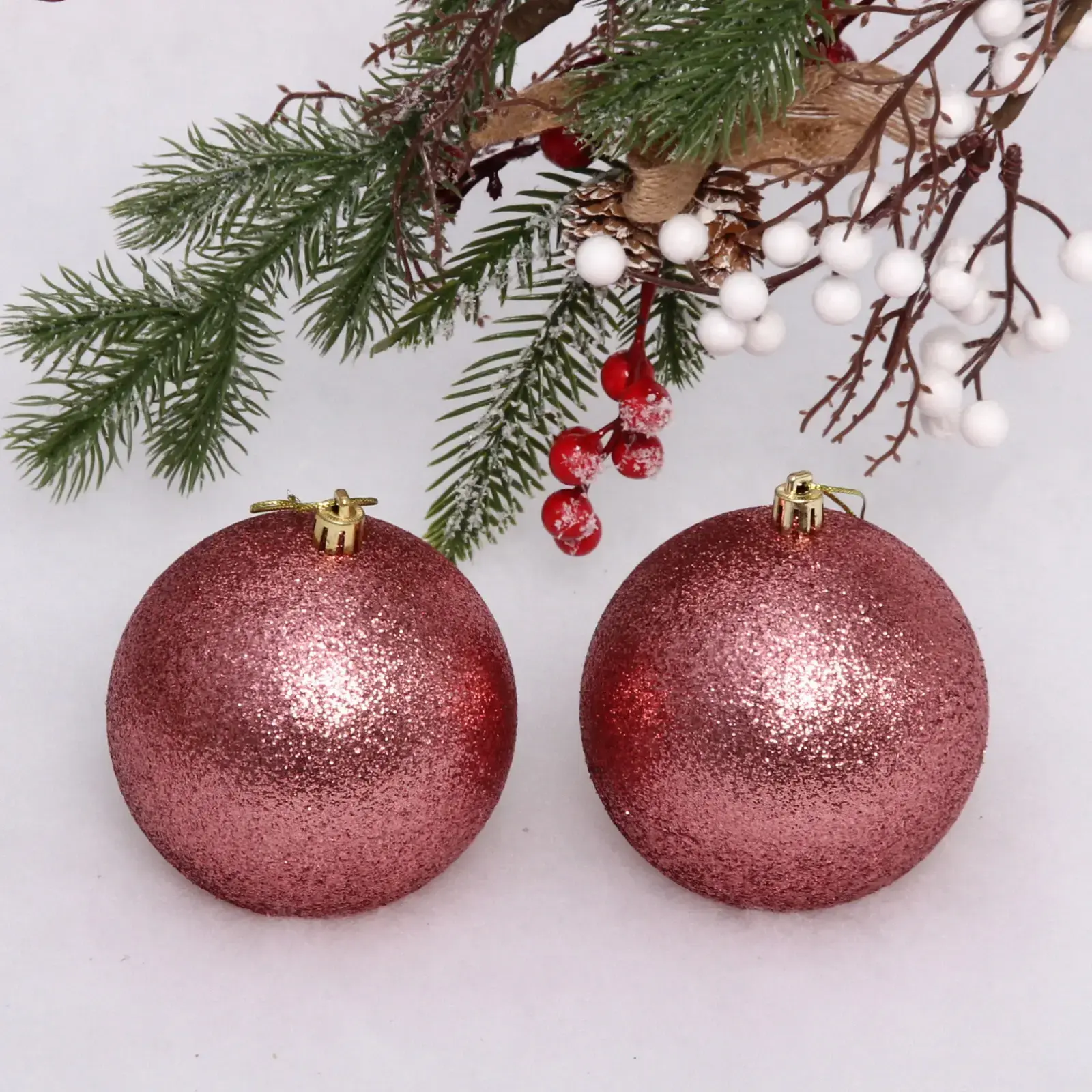 Новогодние шары 10 см (набор 2 шт) «Глиттер», розовое золото, пластик, для елки и декорирования