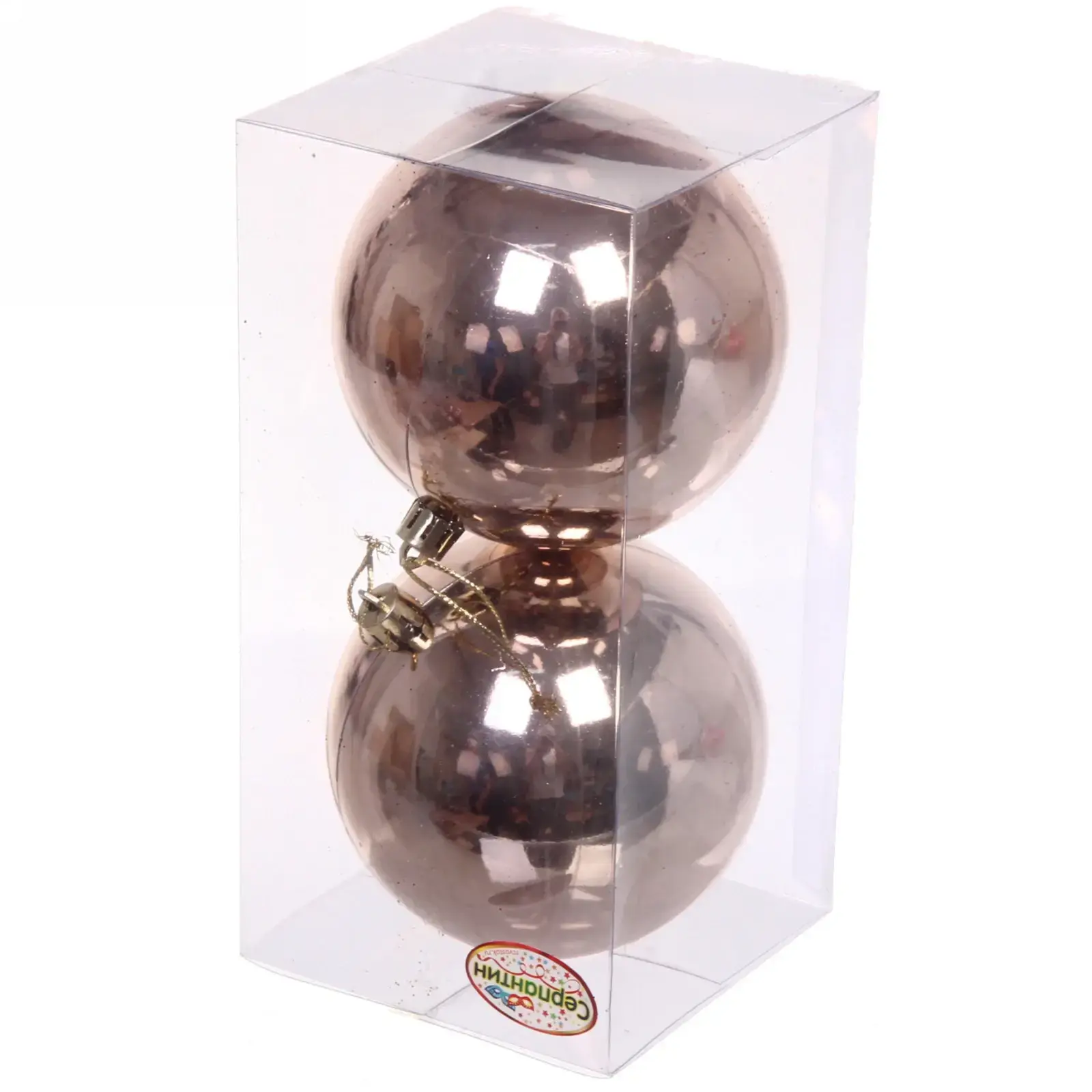 Каждый шар имеет диаметр 10 см, что делает их заметными, но не слишком громоздкими. Цвет шампань с металлическим блеском добавляет элегантности и стиля. Упаковка из прозрачного пластика позволяет увидеть содержимое и защитить шары от повреждений при транспортировке. Эти новогодние шары — отличный выбор для создания праздничного настроения в вашем доме или офисе.