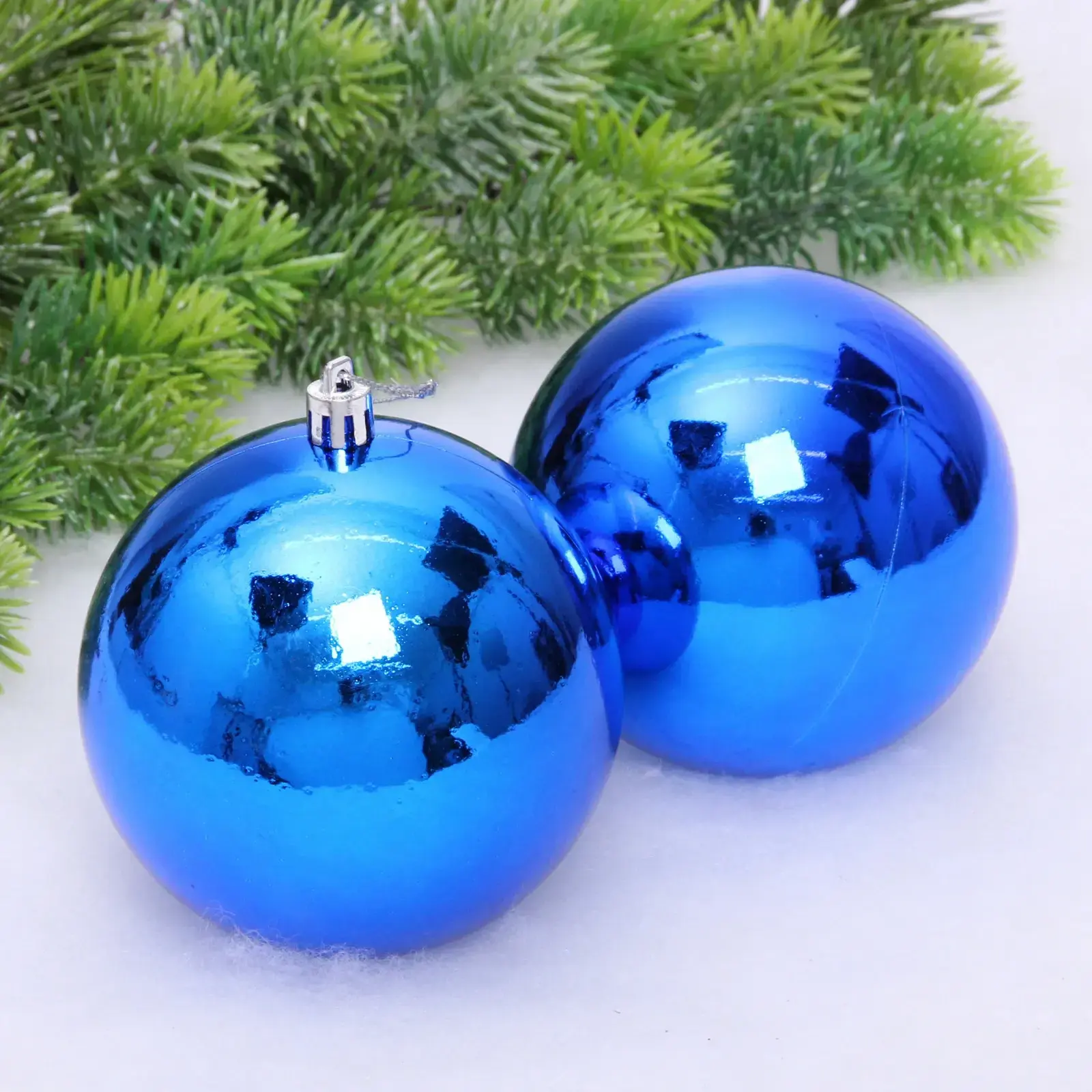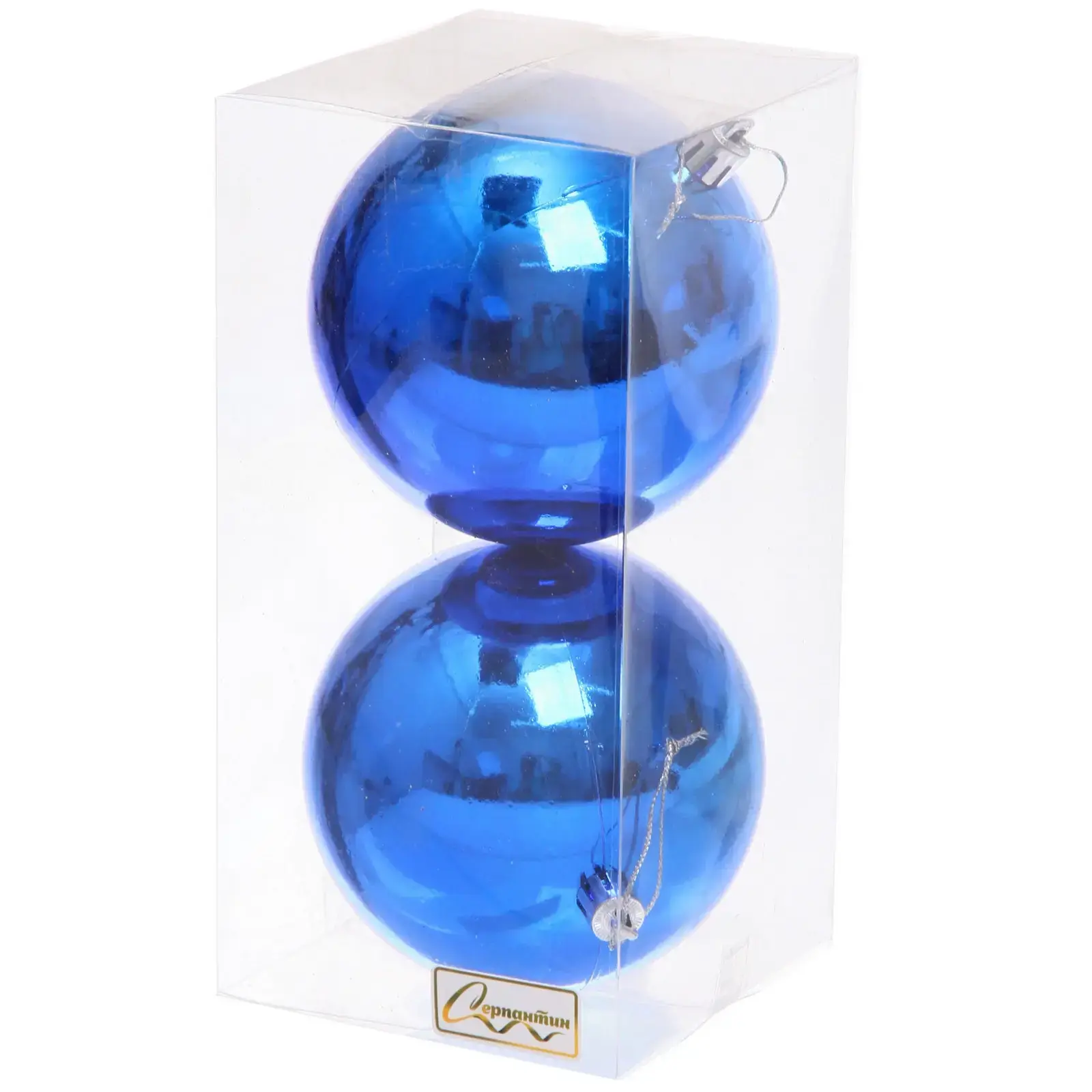 Набор из двух синих новогодних шаров добавит блеска и гармонии в ваш праздничный декор. Гладкая пластиковая поверхность с зеркальным эффектом отражает свет гирлянд, создавая атмосферу зимней сказки.