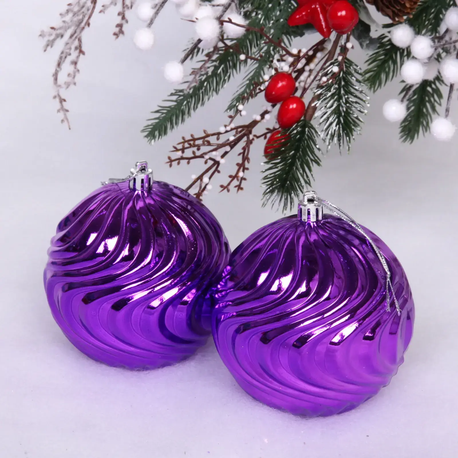 Эти фиолетовые новогодние шары диаметром 10 см с рельефным дизайном добавят ярких красок и праздничного настроения в ваш дом. Они идеально подходят для украшения елки, создания уютной атмосферы в офисе или для использования в качестве стильного декора на праздничных мероприятиях. Каждый шарик оснащен металлической петлей для удобного подвешивания, что делает их простыми в использовании.