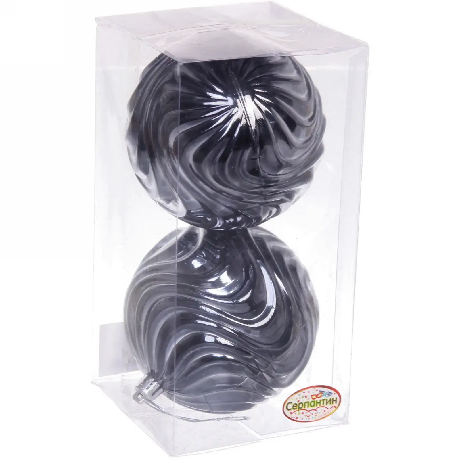 Новогодние шары 10 см (набор 2 шт) «Рельеф», графит, пластик, для елки и декорирования