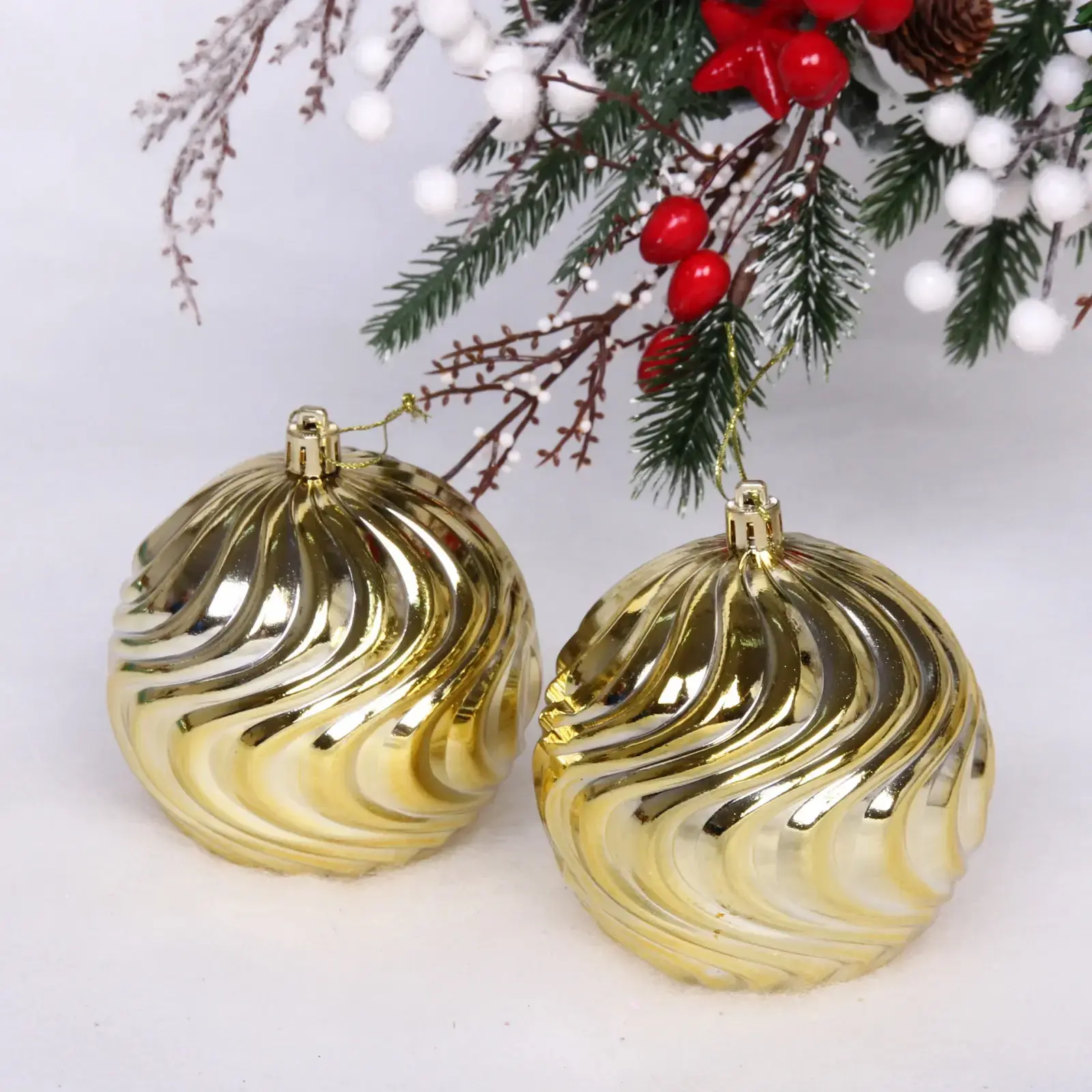 Выбирая наши новогодние шары, вы получаете не только красивый декор, но и долговечность. Пластиковый материал обеспечивает защиту от повреждений, а блестящая золотая отделка добавляет элегантности. Рельефная текстура создает эффект глубины, что делает шары особенно привлекательными в свете новогодних огней.