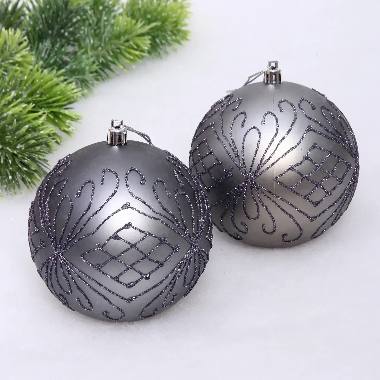 Эти новогодние шары станут идеальным дополнением к вашему праздничному декору. Их стильный графитовый цвет и изысканные узоры придадут вашей ёлке уникальность и шарм. Каждый шар диаметром 10 см выполнен из прочного пластика, что обеспечивает долговечность и надежность в использовании. Они легко подвешиваются благодаря металлическим петелькам, что делает процесс декорирования простым и приятным.