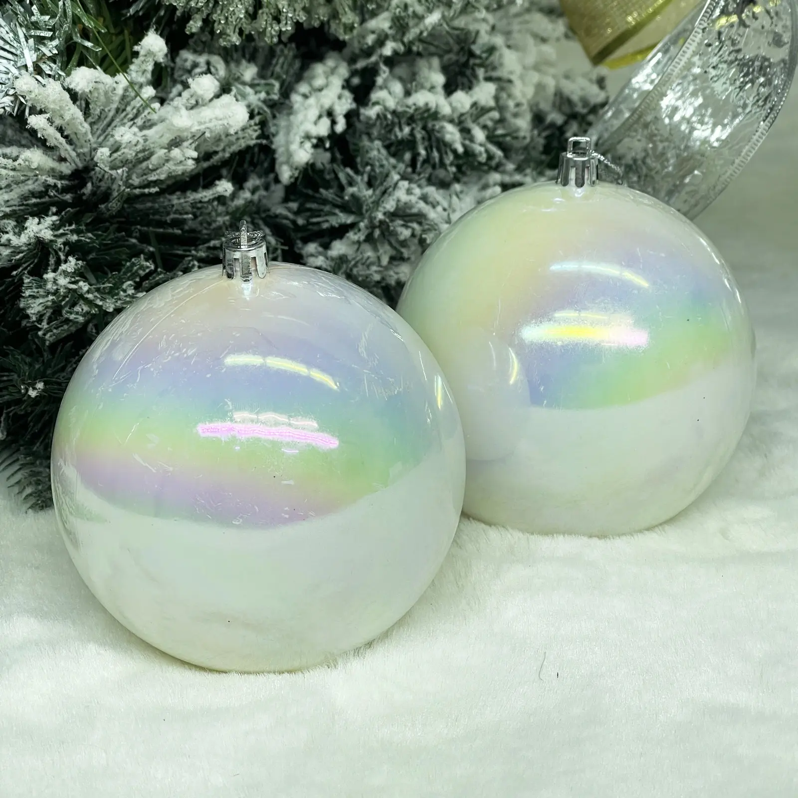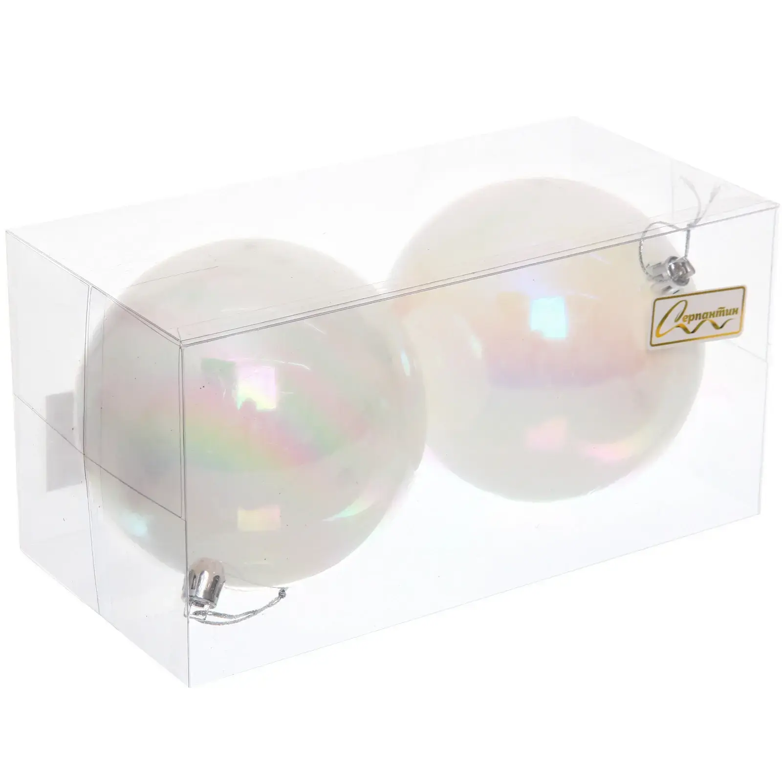 Диаметр каждого шара — 10 см, материал — пластик. В комплекте 2 штуки в прозрачной упаковке, благодаря которой шары удобно хранить и дарить. Перламутровое покрытие отражает свет, создавая мягкое сияние, которое подчеркнёт красоту новогоднего убранства.