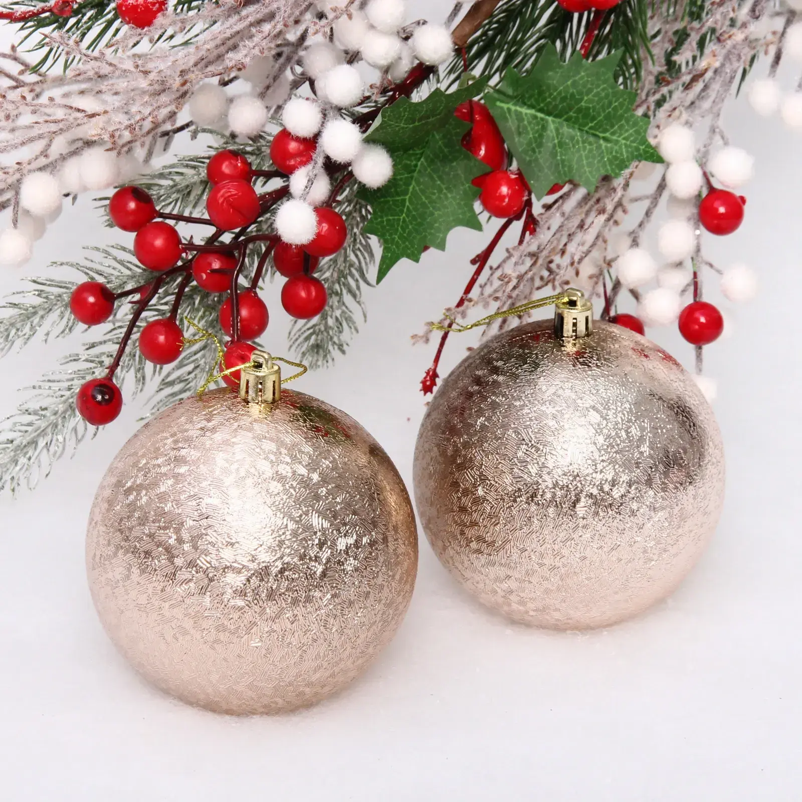 Шары легко подвешиваются благодаря металлическим креплениям, что делает их удобными в использовании. Они подойдут для любого стиля оформления — от классического до современного. Эти игрушки идеально подходят как для домашнего декора, так и для оформления праздничных мероприятий, создавая атмосферу уюта и радости.