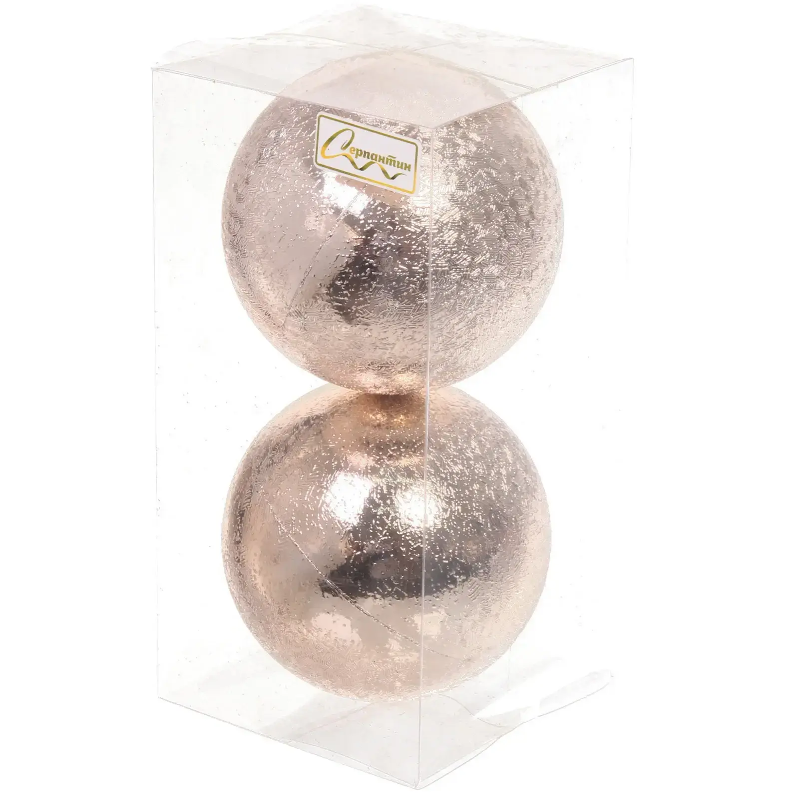 Шары имеют размер 10 см и выполнены из качественного пластика, что делает их легкими и безопасными для использования. Их нежный шампань цвет с блестящей текстурой прекрасно сочетается с другими новогодними украшениями, добавляя изюминку в ваш праздничный декор. Упаковка из прозрачного пластика позволяет удобно хранить шары, защищая их от повреждений.