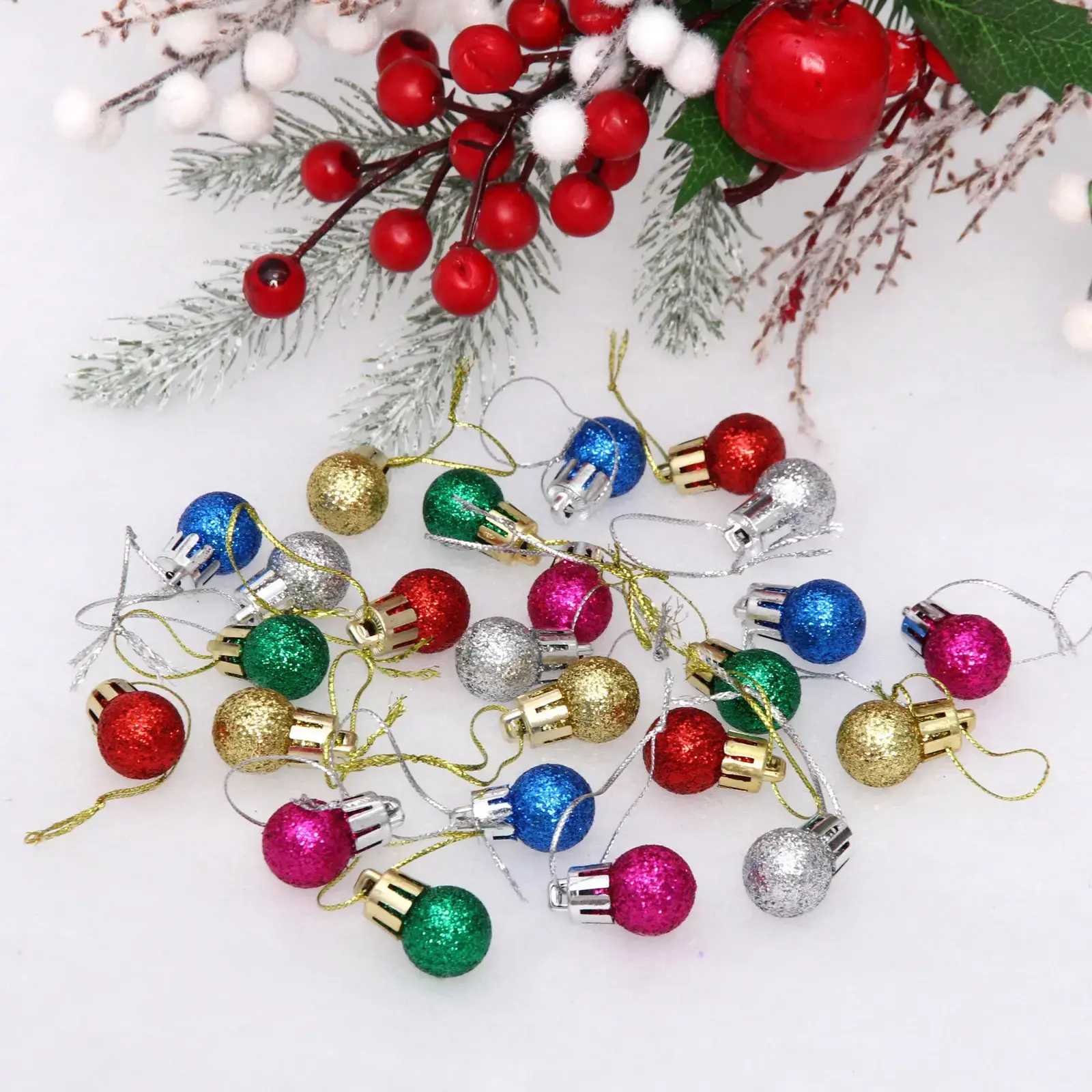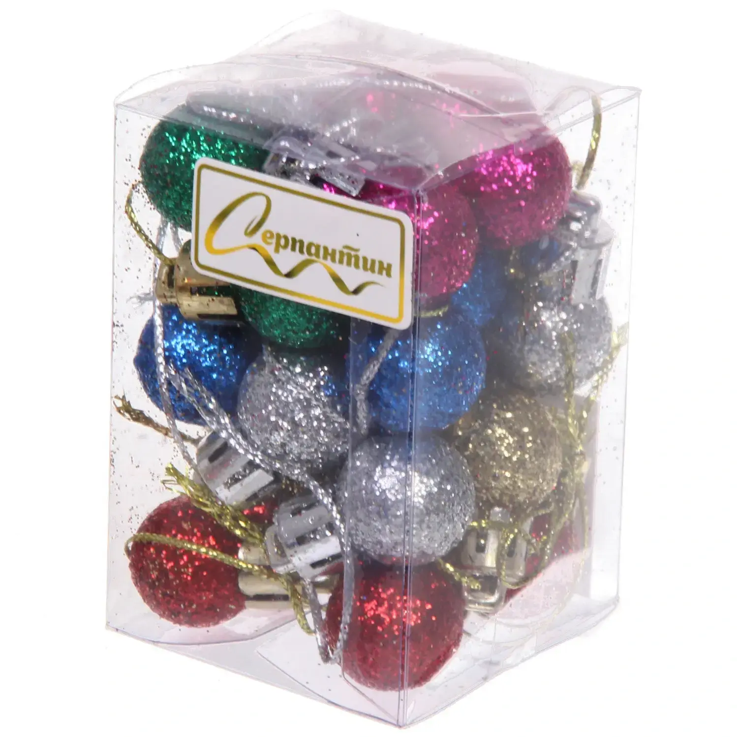 Новогодние шары 2 см (набор 24 шт) «Глиттер», микс, пластик, для елки и декорирования