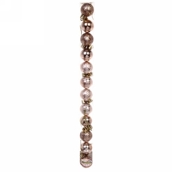 Каждый шар имеет диаметр 3 см, что делает их идеальными для создания объемных композиций. Набор включает 12 шаров, что позволяет вам экспериментировать с размещением и сочетанием цветов. Цветовая гамма включает золотистые и бежевые оттенки, что добавляет изысканности вашему декору. Эти шары — отличный выбор для тех, кто ценит качество и стиль в праздничном оформлении.