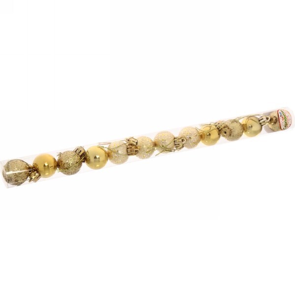 Новогодние шары — это не просто украшения, это символы праздника, которые наполняют ваш дом атмосферой уюта и радости. Набор из 12 шаров диаметром 3 см в золотом цвете с разнообразными фактурами станет идеальным дополнением к вашему новогоднему декору. Эти шары подойдут как для украшения елки, так и для создания стильных композиций в офисе или на праздничном столе.