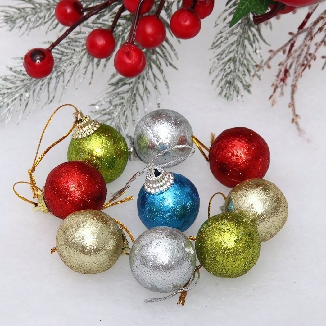 Шары диаметром 3 см легко подвешиваются благодаря золотистым нитям, которые входят в комплект. Они подходят для любого стиля оформления, будь то классический или современный. Используйте их для создания уникальных композиций на ёлке или в интерьере.