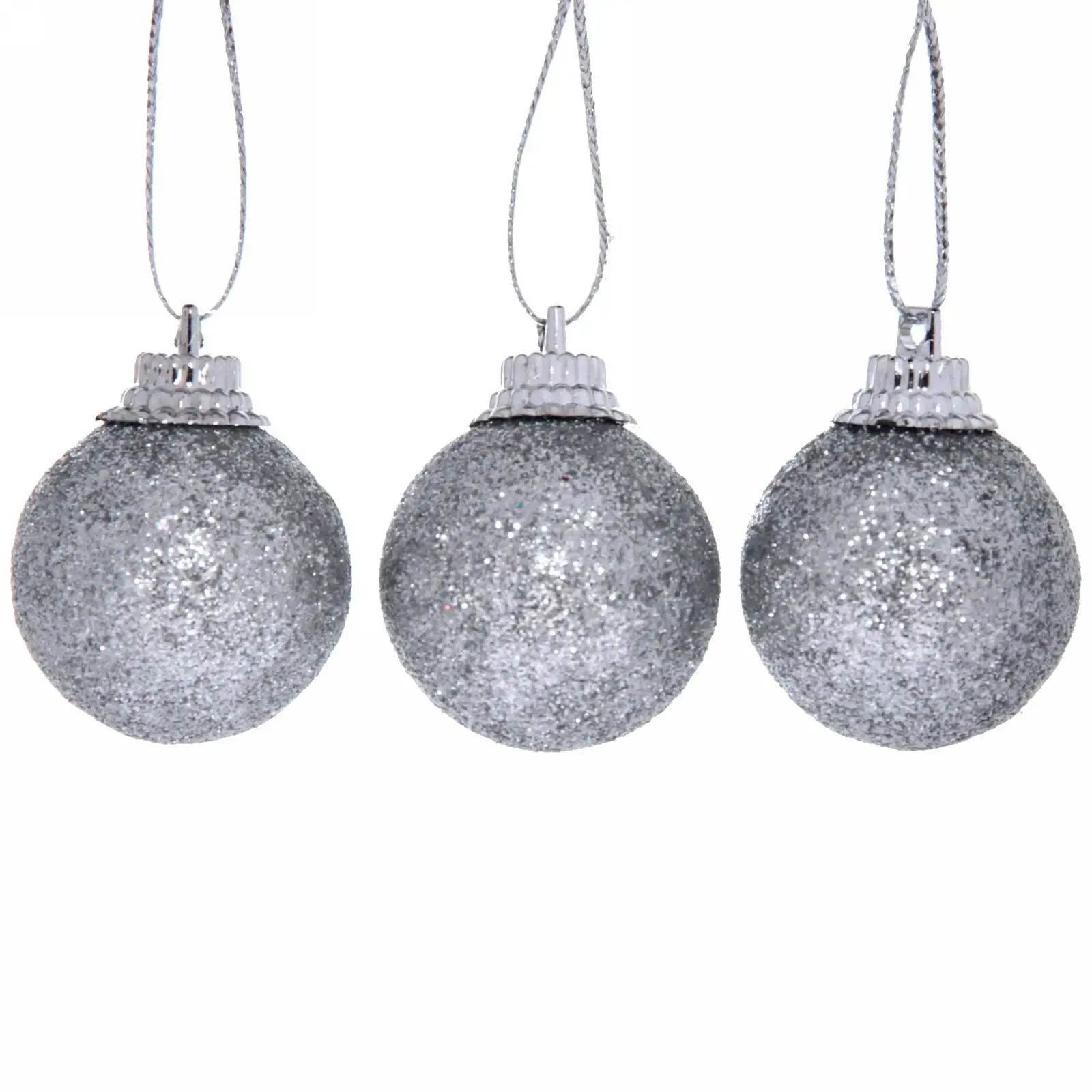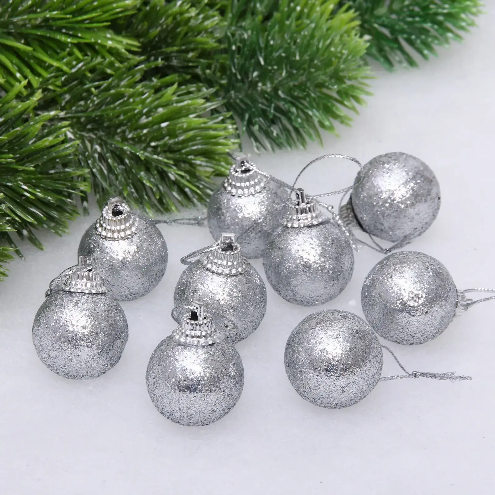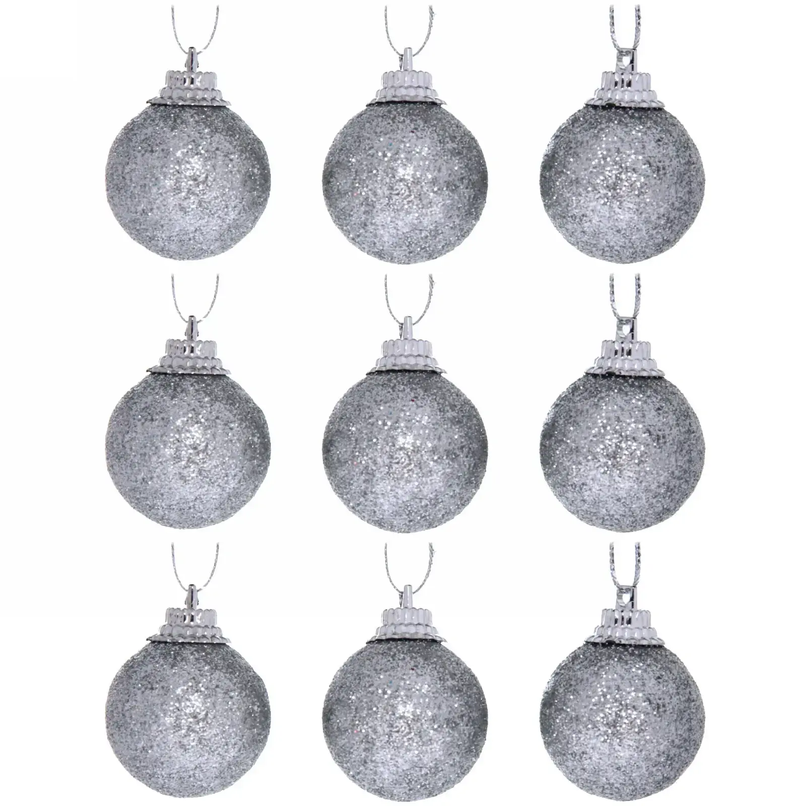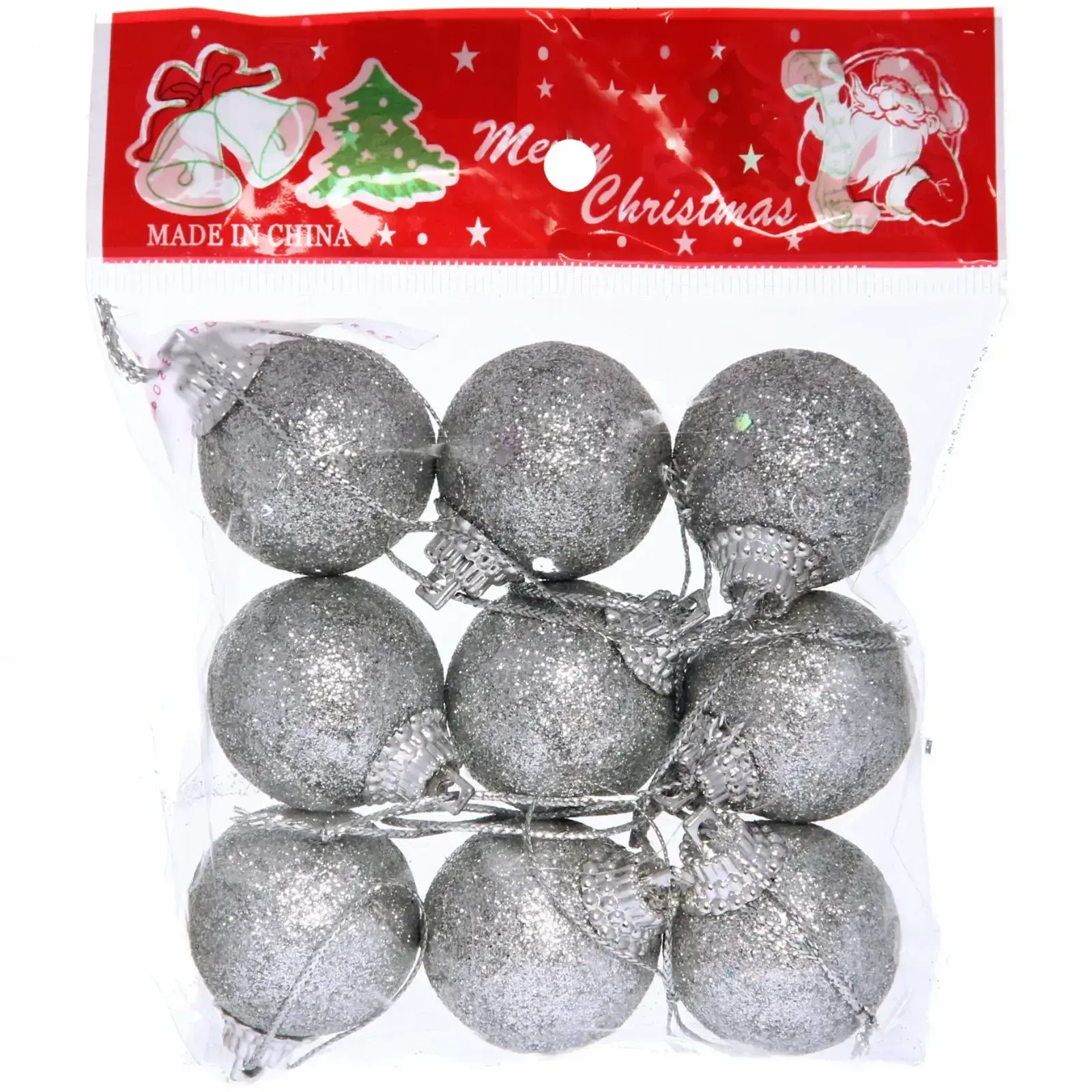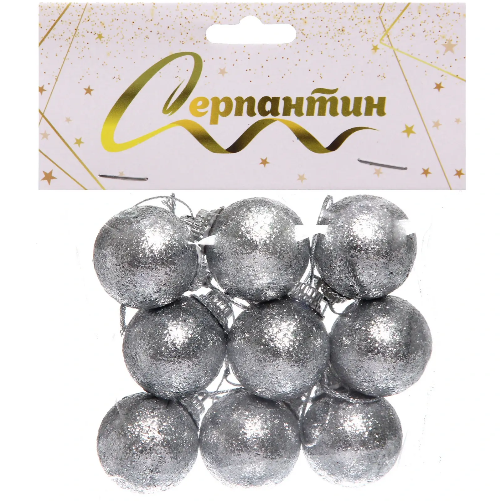 Новогодние шары 3 см (набор 9 шт) «Блестящее напыление», серебро, пластик, для елки и декорирования