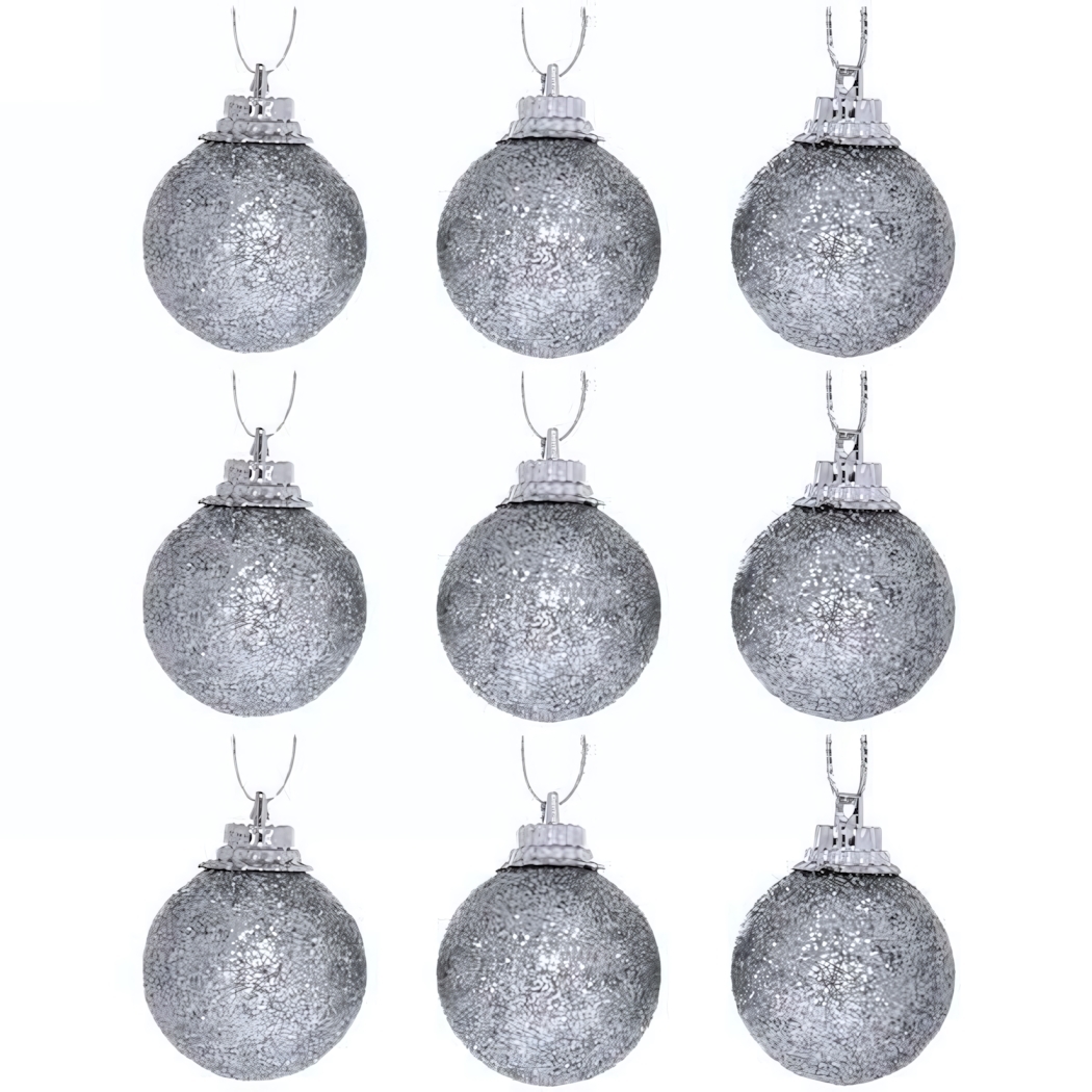Новогодние шары 3см, набор 9шт, серебро, блестящее напыление