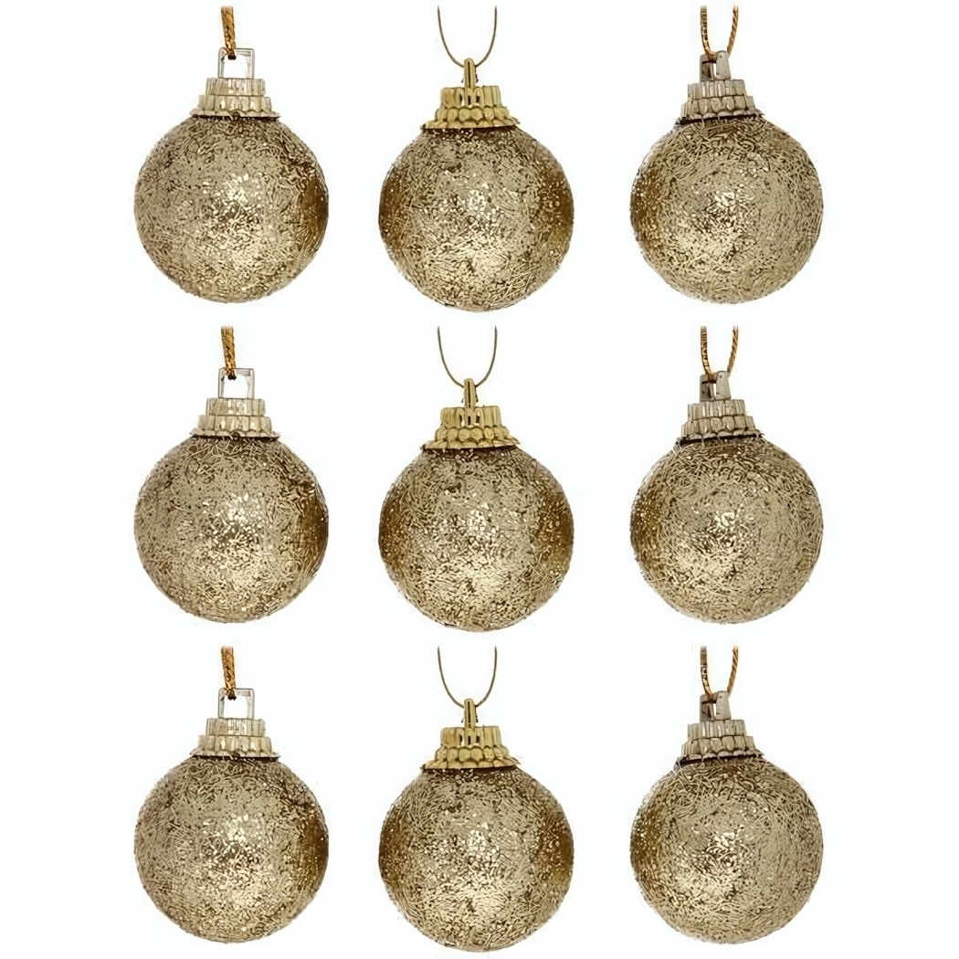 Этот набор из 9 золотых шаров станет идеальной основой для украшения вашей новогодней елки. Блестящее напыление переливается при любом освещении, создавая эффект роскоши и торжественности.