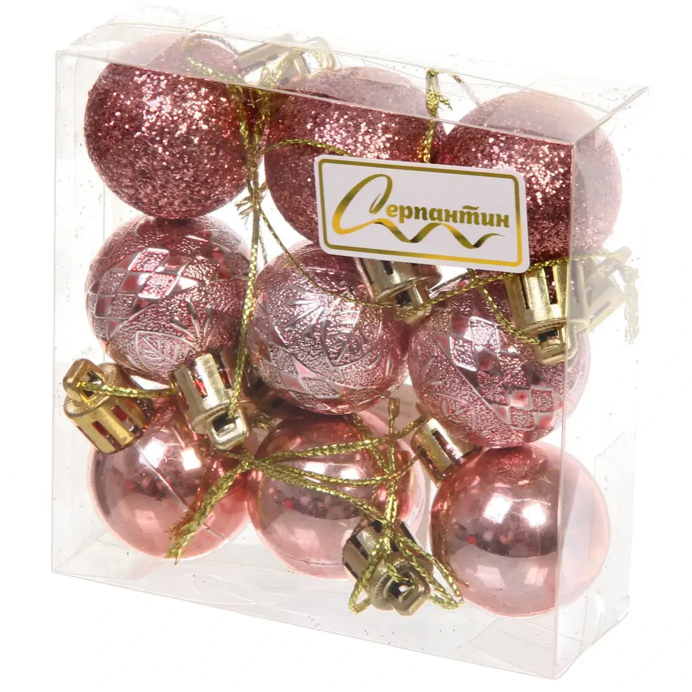 В набор входят 9 шаров, каждый из которых имеет диаметр 3 см. Материал — пластик, что делает их легкими и безопасными для использования. Цветовая палитра включает розовые и золотистые оттенки, что добавляет элегантности и стиля. Эти шары станут отличным дополнением к вашему новогоднему декору и подарком для близких.