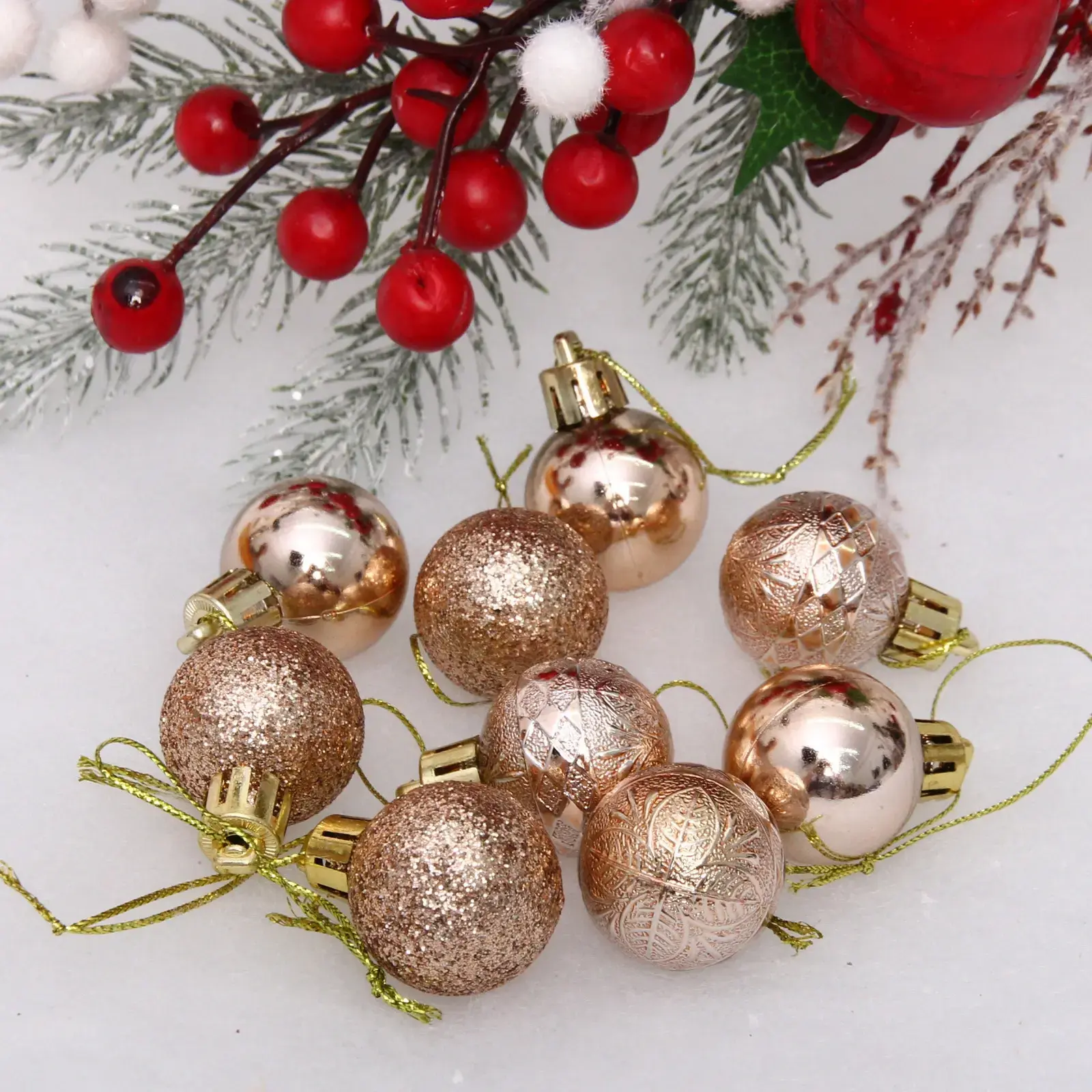 Погрузитесь в мир праздника с набором новогодних шаров «Микс фактур». Эти шары диаметром 3 см, выполненные в нежных шампань и розовых оттенках, добавят изысканности и уюта вашему новогоднему декору. Каждый шарик имеет уникальную текстуру: некоторые из них блестящие, а другие покрыты глиттером, что создает эффект мерцания и привлекает внимание.