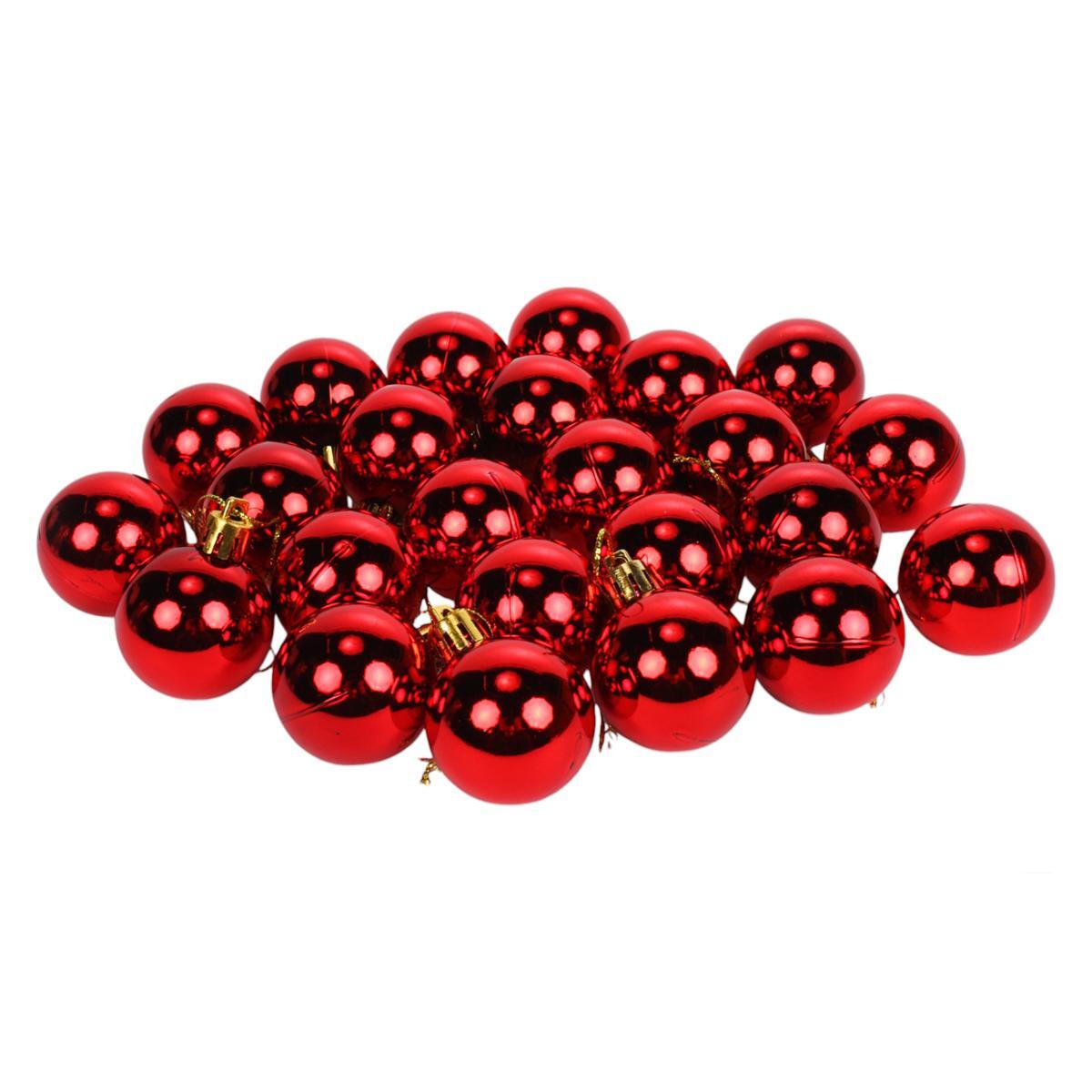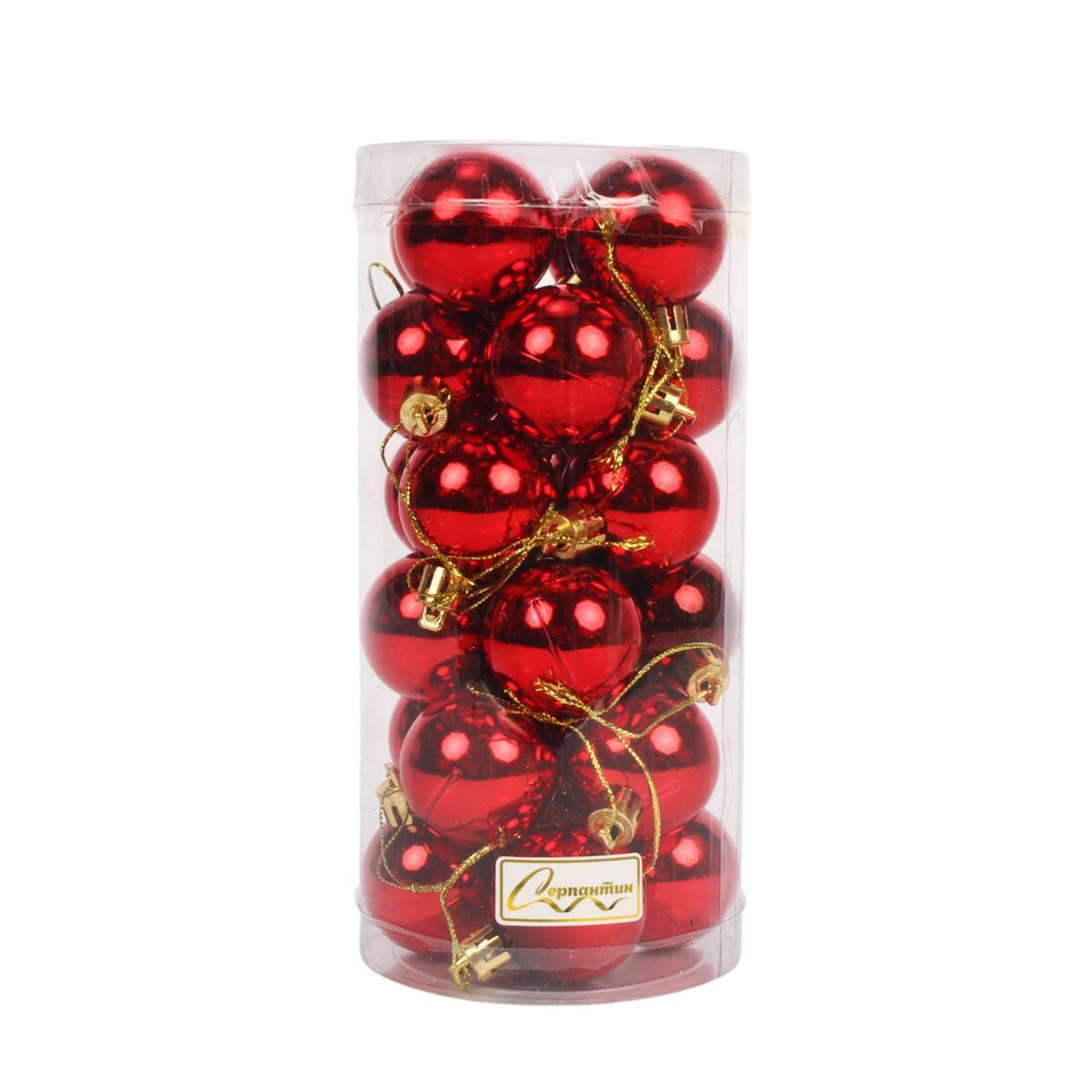 Новогодние шары 4 см, глянцевый блеск, красный, набор из 24 штук – яркое украшение ёлки, Серпантин