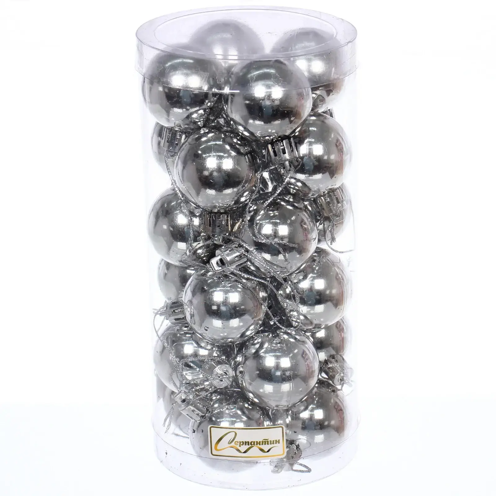 Новогодние шары 4 см (набор 24 шт) «Глянец», серебро, пластик, для елки и декорирования