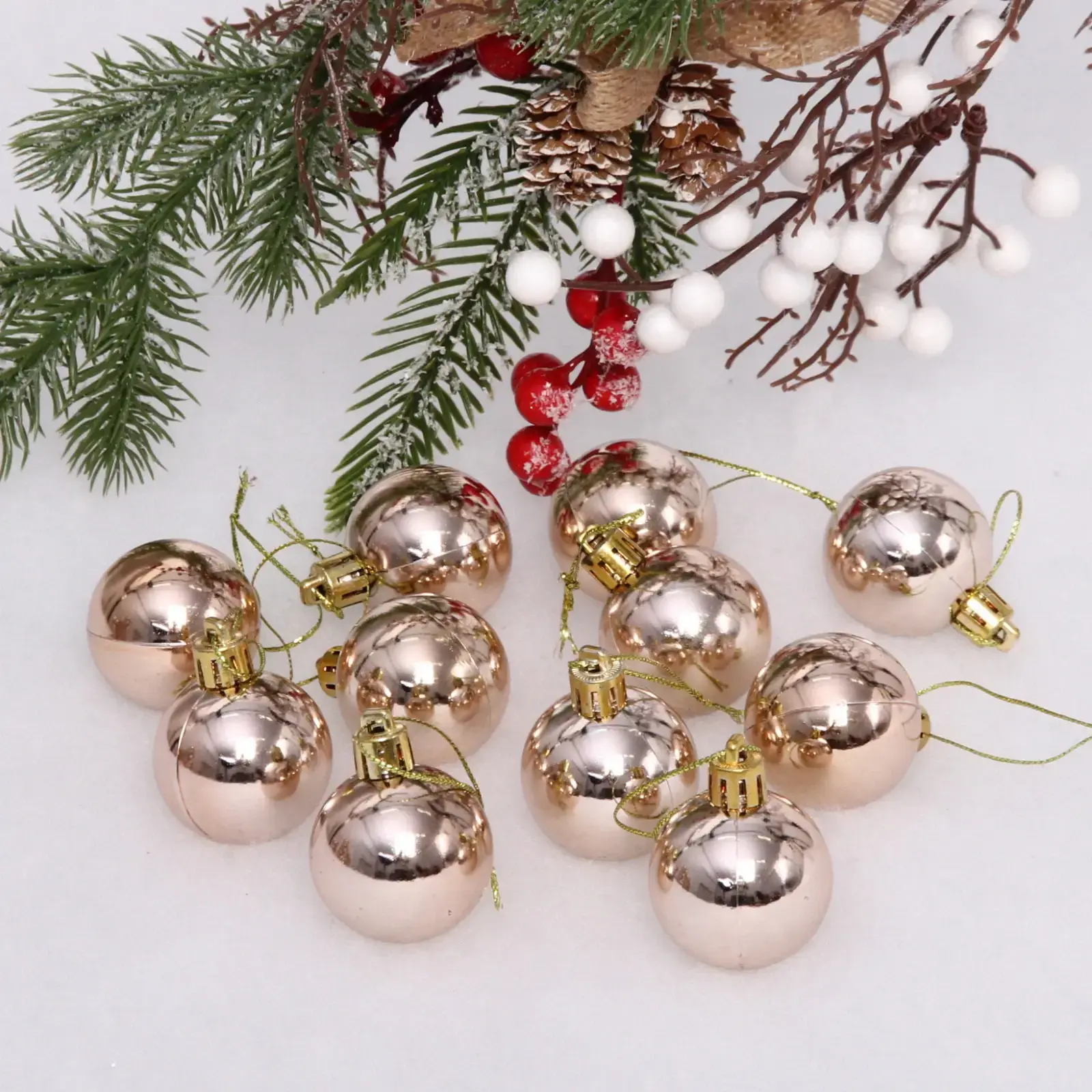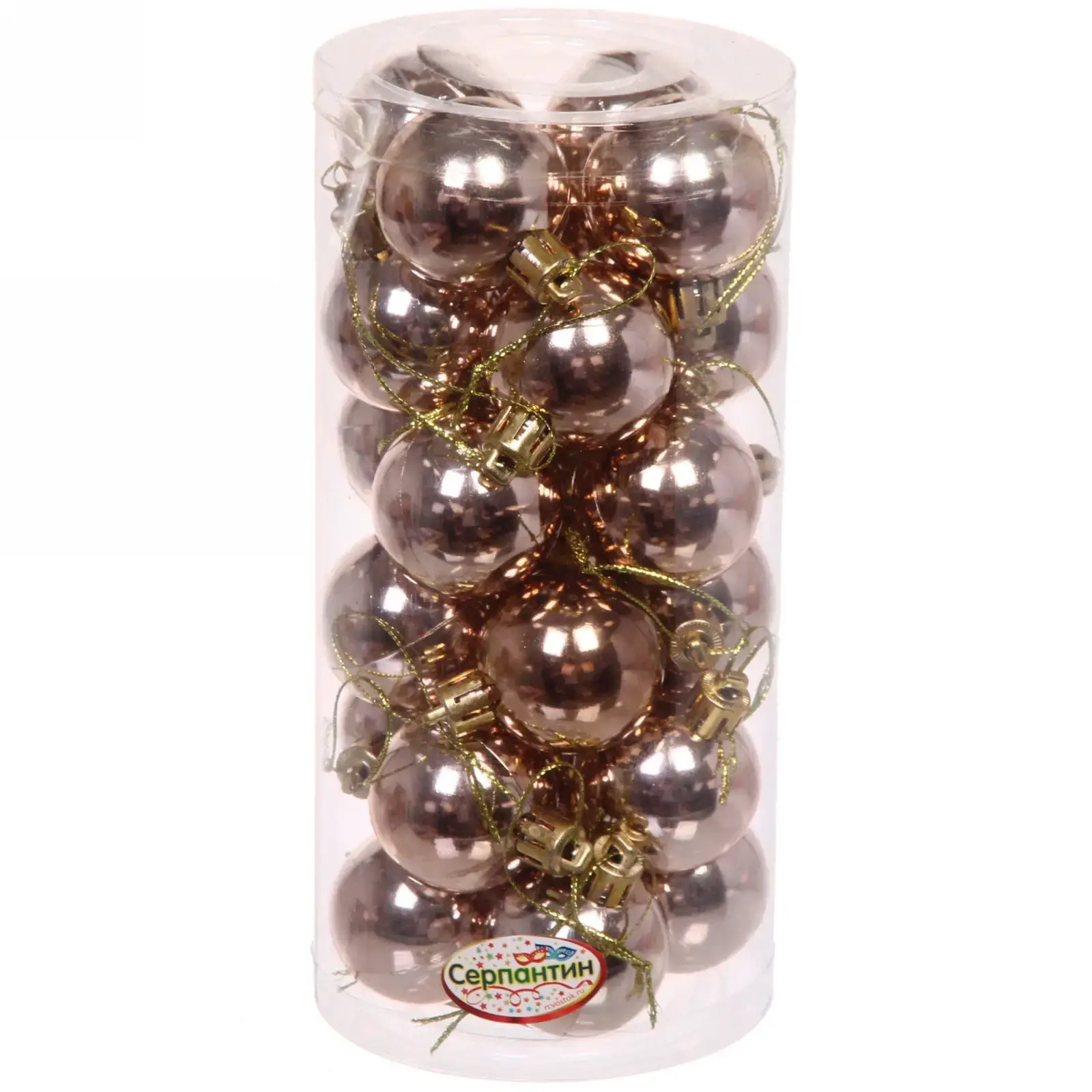 В наборе 24 шара, что достаточно для полноценного украшения небольшой или средней елки. Каждый шар оснащен прочной петелькой для удобного крепления.