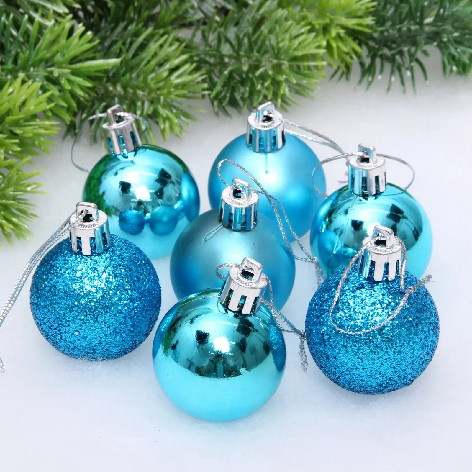 Новогодние шары 4 см (набор 24 шт) «Микс фактур», голубой, пластик, для елки и декорирования