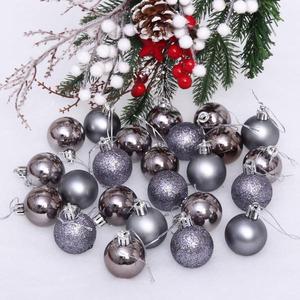 Новогодний набор 24 шт 4 см, «микс фактур», графит, серебр, бронза, матовый, блестящий