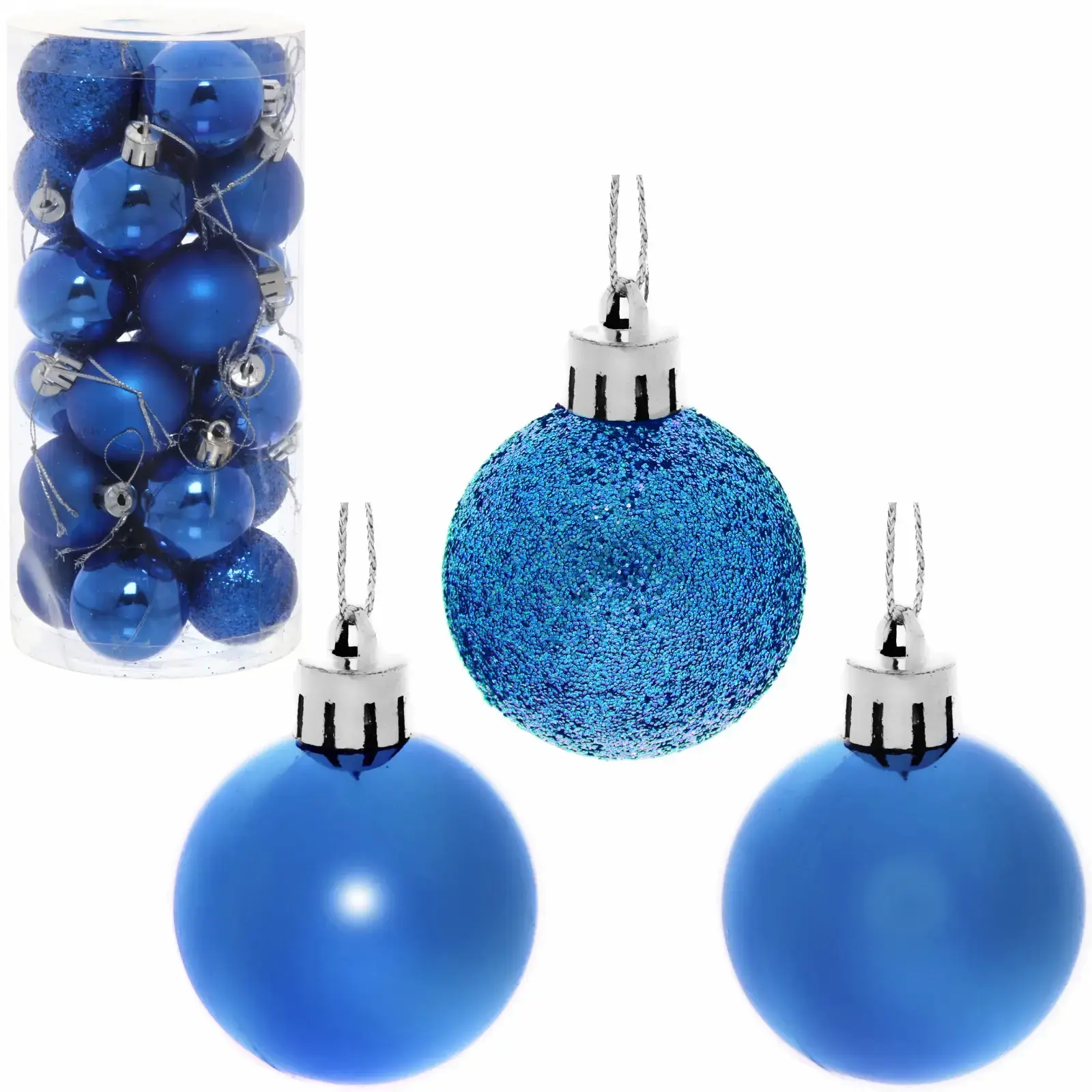 Новогодние шары — это не просто украшения, это символы праздника, которые наполняют дом атмосферой уюта и радости. Набор из 24 шаров диаметром 4 см в различных оттенках синего цвета станет идеальным дополнением к вашей новогодней елке. Эти шары с уникальными текстурами, включая гладкие и блестящие, позволят вам создать неповторимый стиль оформления, который будет радовать глаз и поднимать настроение.