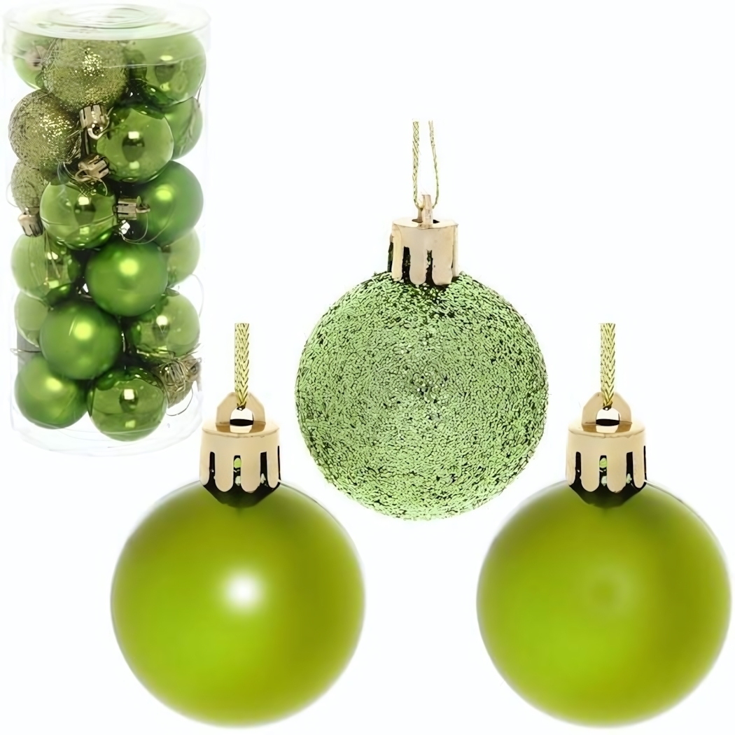 Новогодний набор шаров 4 см, 24 шт, «микс фактур», салатовый цвет, яркое украшение елки