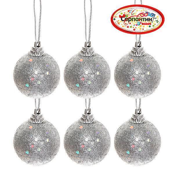 Набор новогодних шаров 4см, серебро, 6шт, с блестящим напылением