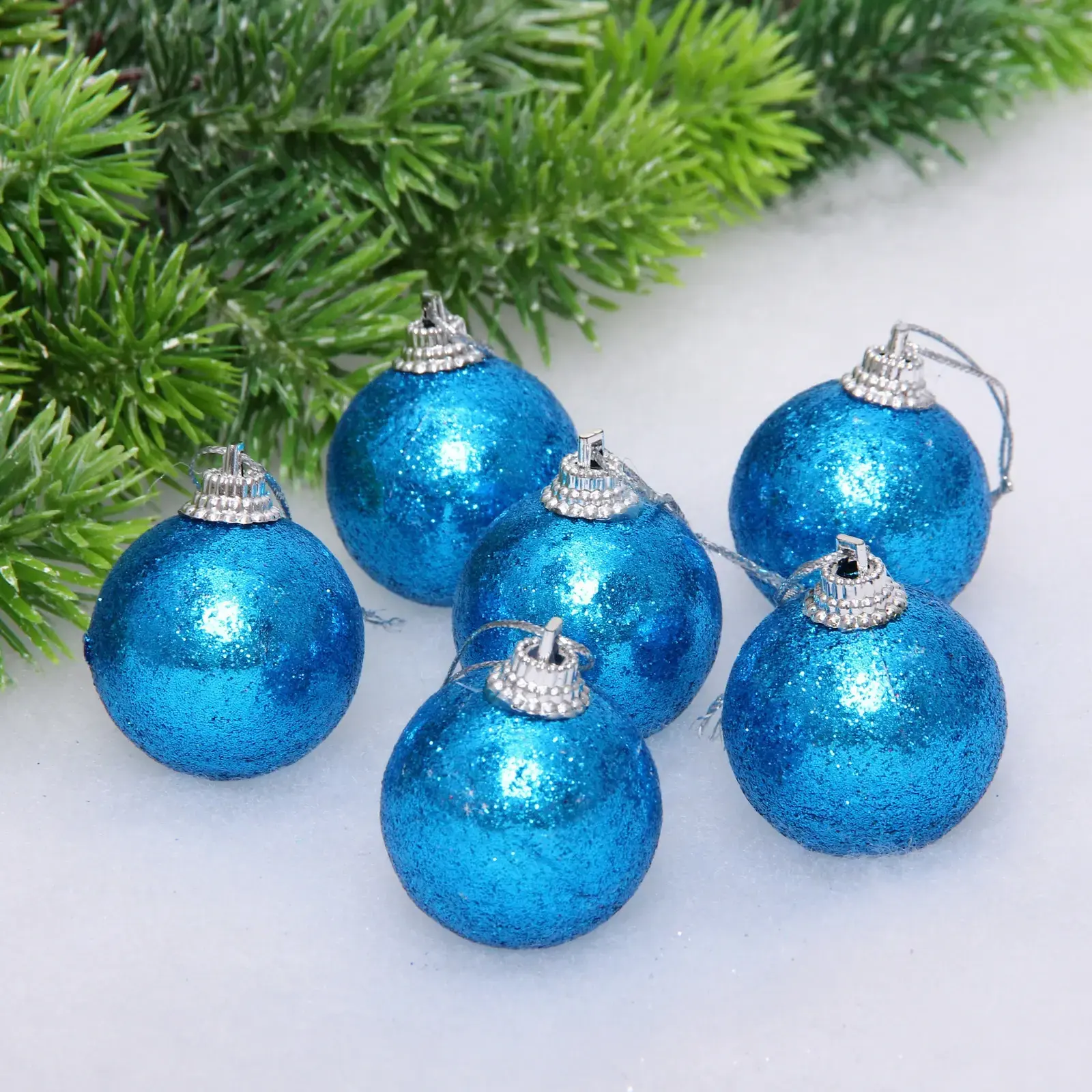 Новогодние шары 4 см (набор 6 шт) «Блестящее напыление», голубой, пластик, для елки и декорирования