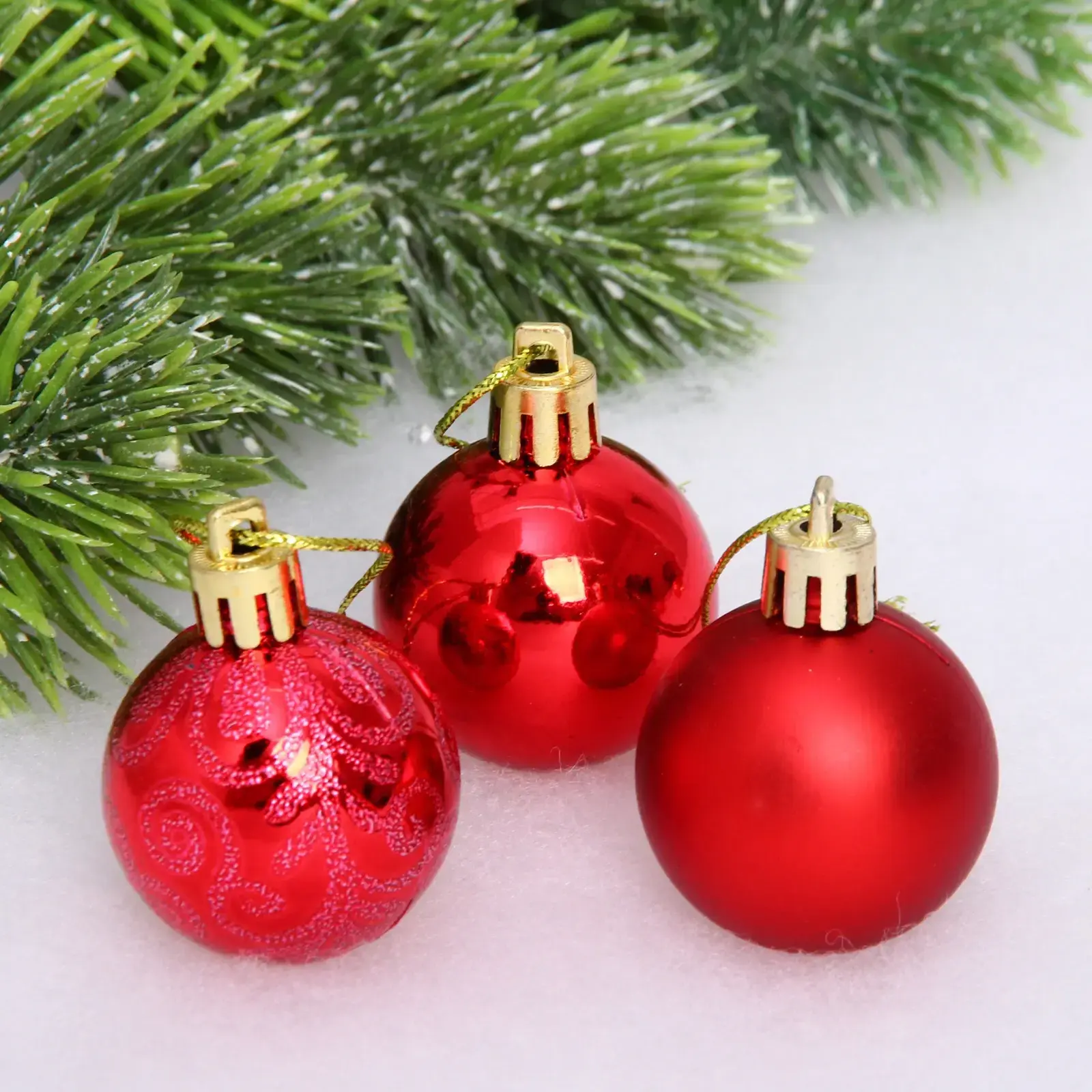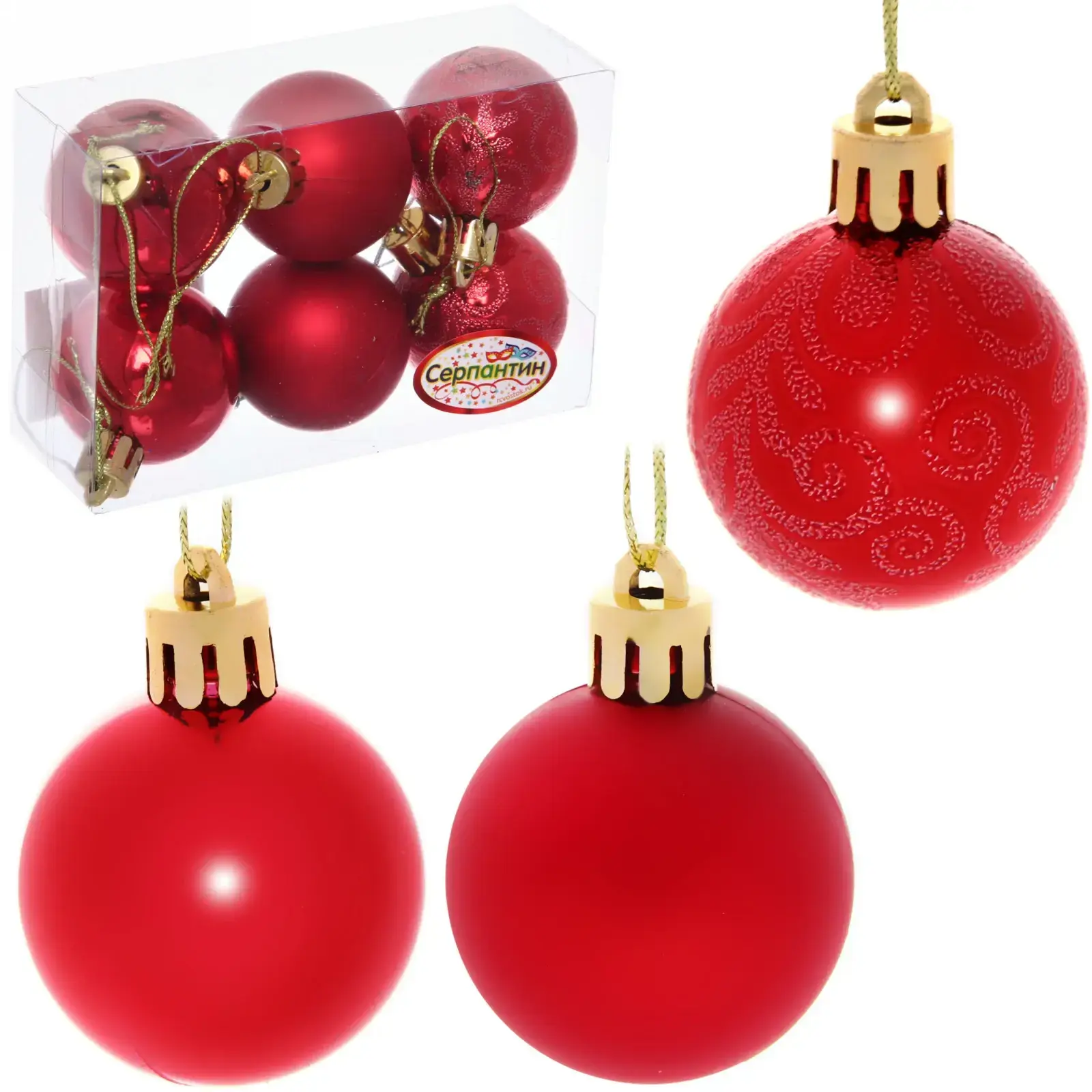 Благодаря универсальному размеру 4 см, предметы легко комбинируются с другими декоративными элементами. Надёжные золотистые крепления обеспечивают удобную подвеску, а ярко-красный цвет добавит тепла и праздничного настроения. Такой комплект полностью заменит множество различных украшений, экономя ваше время и деньги, а также дополнит интерьер как в классическом, так и в современном стиле.
