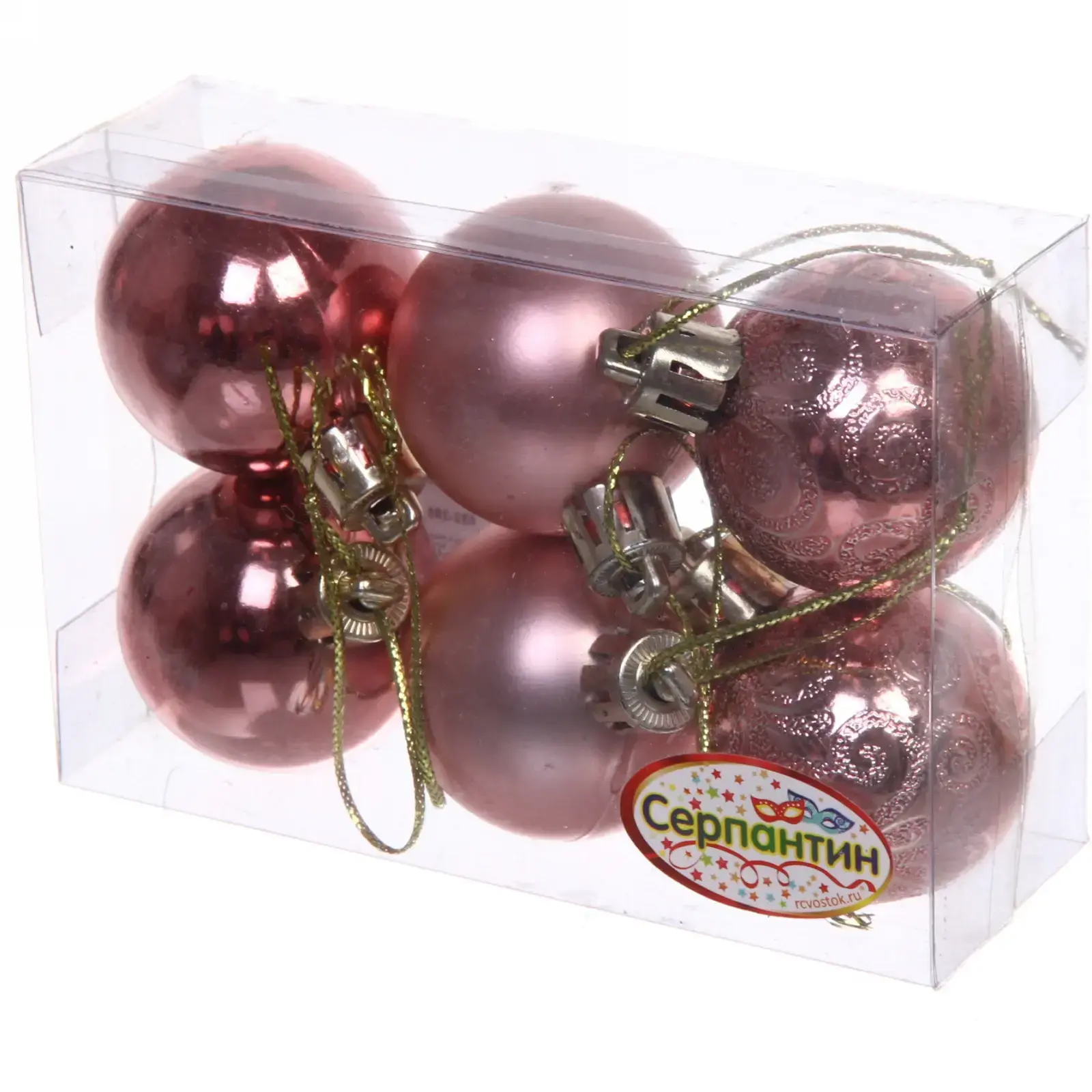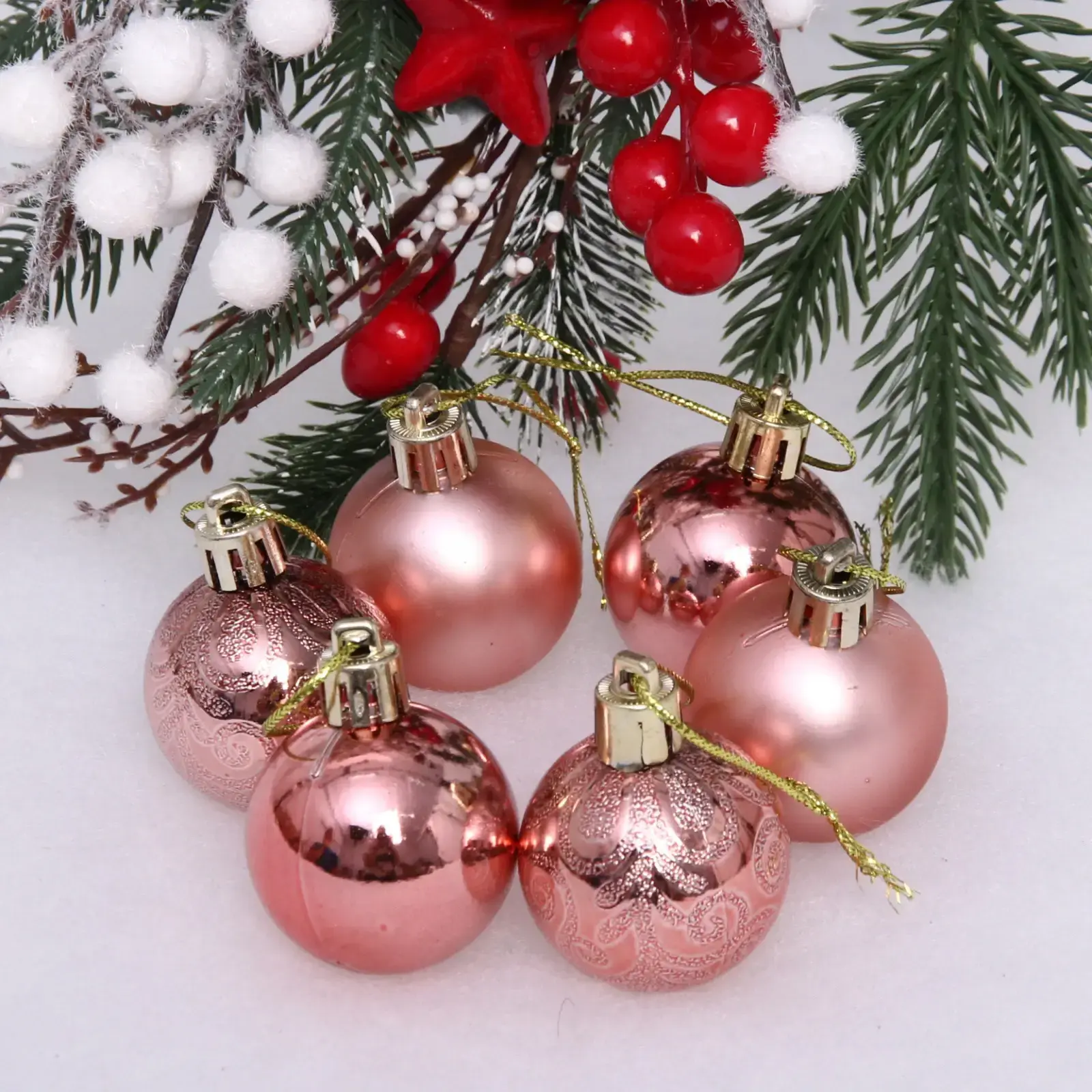 Новогодние шары 4 см (набор 6 шт) «Микс фактур», розовое золото, пластик, для елки и декорирования