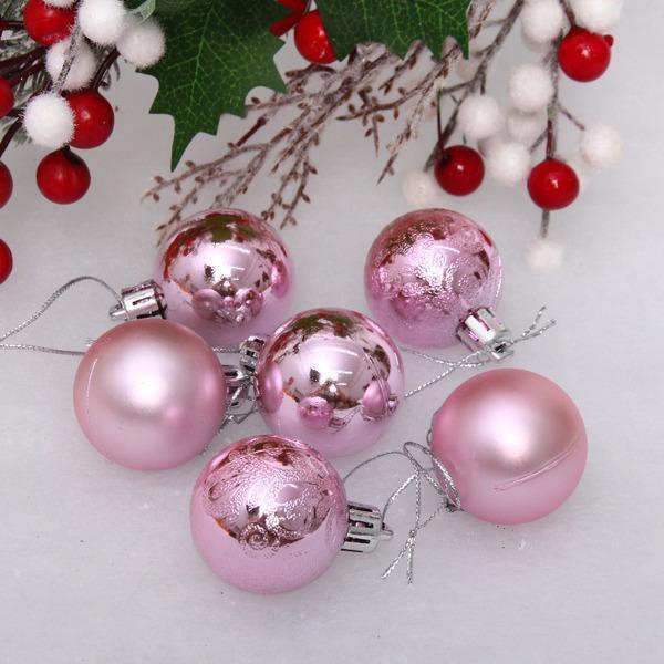 Каждый шар в наборе имеет стандартный размер 4 см, что делает их универсальными для любого типа елки. Они выполнены в розовом цвете с различными текстурами, включая матовые и глянцевые поверхности. Некоторые шары украшены металлическими элементами для удобного подвешивания. Этот набор станет отличным дополнением к вашему новогоднему декору и подарит вам радость в праздничные дни.