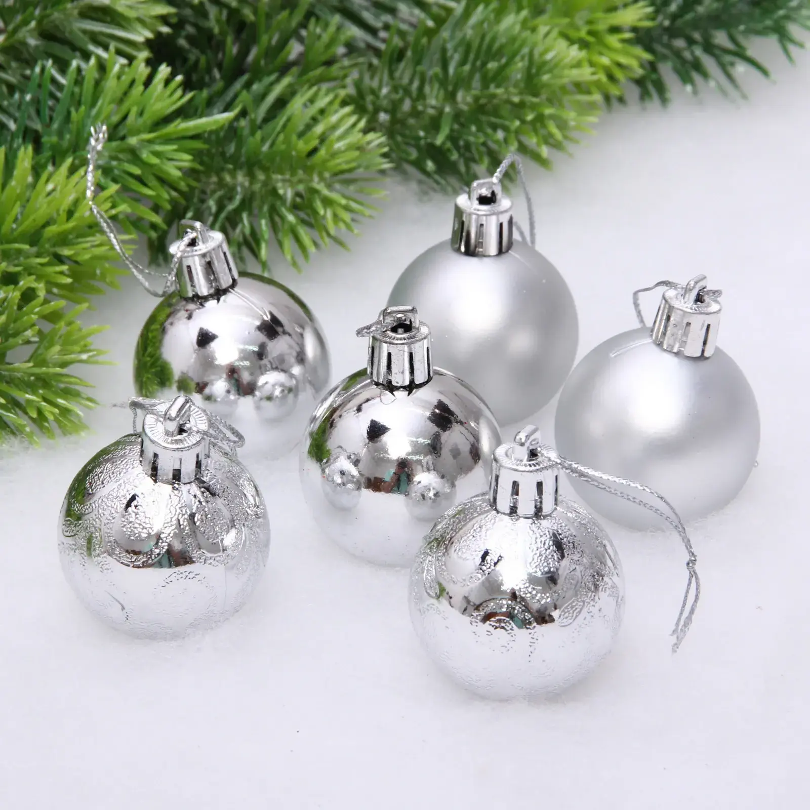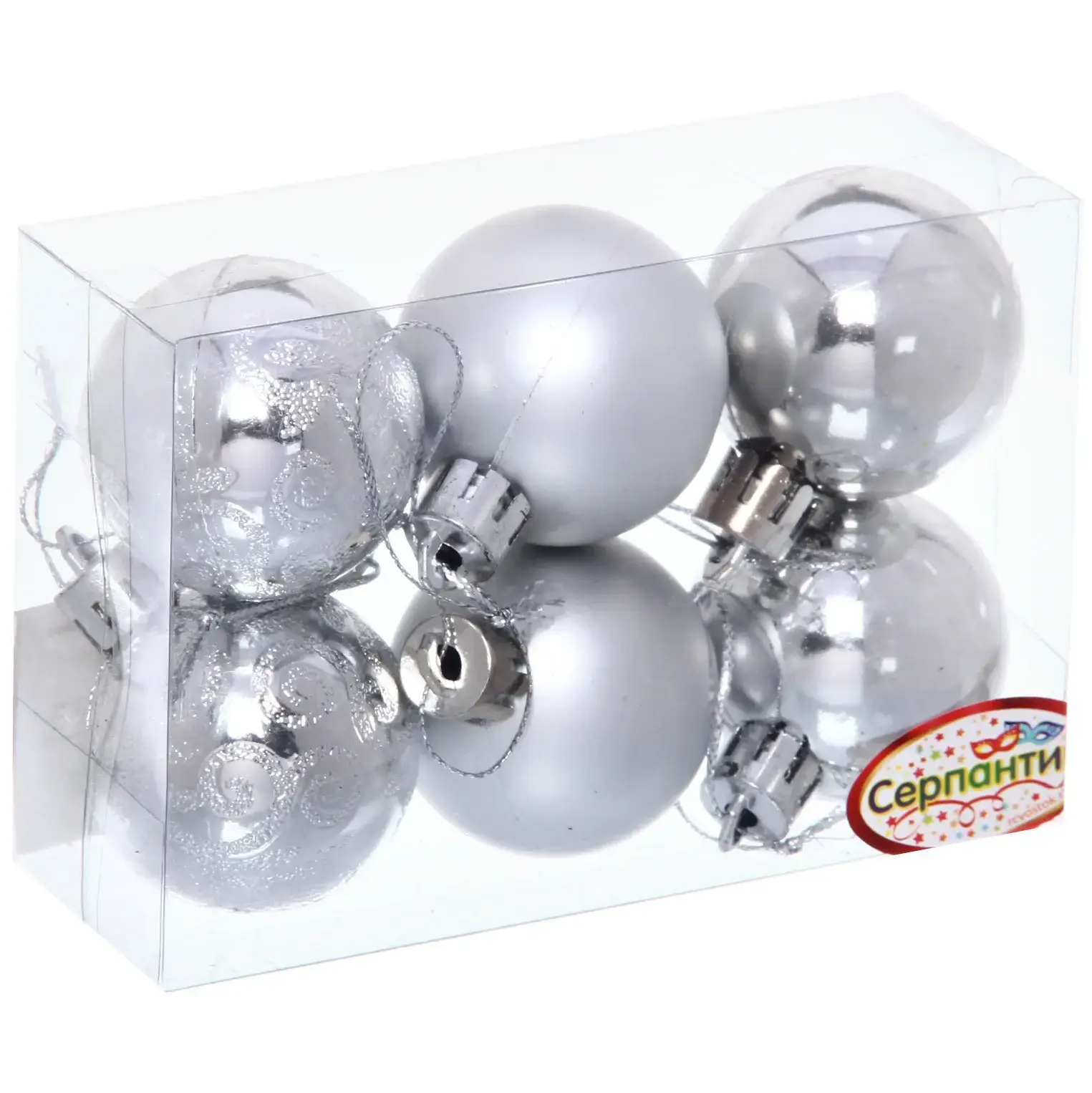 Каждый шар имеет стандартный размер 4 см и выполнен в серебристом цвете, что делает их универсальными для любого стиля оформления. Упаковка прозрачная, что позволяет увидеть все шары и выбрать нужные для вашего декора. Не упустите возможность добавить в ваш праздник частичку волшебства с этими замечательными новогодними шарами!