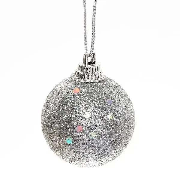 Новогодние шары «Блестящее напыление», 4 см, набор 6 шт, серебро с разноцветными блестками