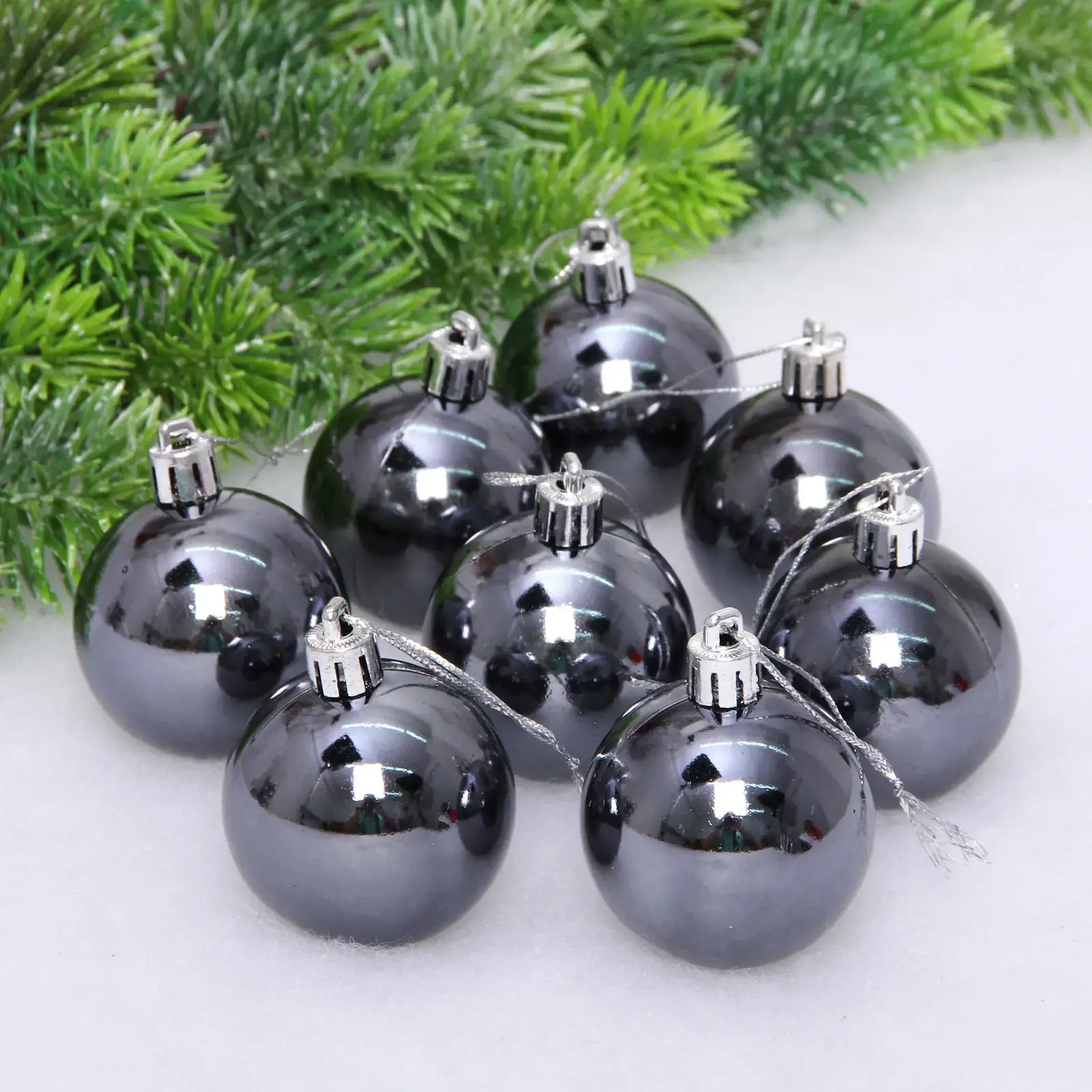 Новогодние шары — это не просто украшения, это символы волшебства и радости, которые наполняют наш дом теплом и уютом. Набор из 24 шаров диаметром 5 см в графитовом цвете с гладкой блестящей поверхностью станет идеальным дополнением к вашему новогоднему декору. Эти шары прекрасно подойдут как для украшения елки, так и для создания стильного оформления в офисе или на праздничном мероприятии.