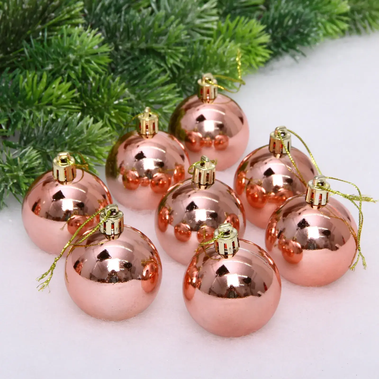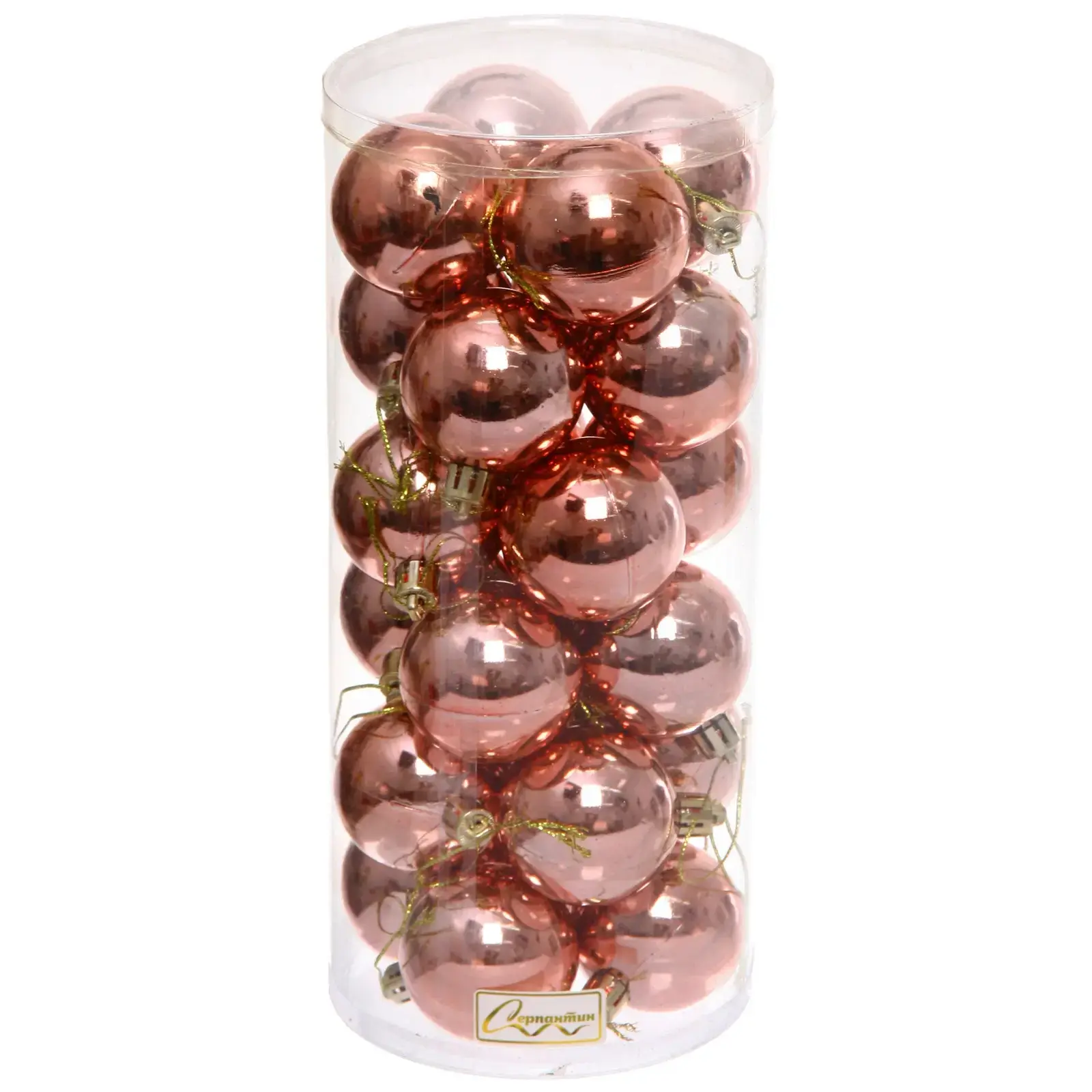 Новогодние шары — это не просто украшения, это символы праздника, которые наполняют ваш дом атмосферой уюта и радости. Набор из 24 шаров диаметром 5 см в глянцевом розовом золоте станет идеальным дополнением к вашей новогодней елке или праздничному декору. Эти шары не только красивы, но и практичны, ведь они легко крепятся благодаря золотистым петелькам.