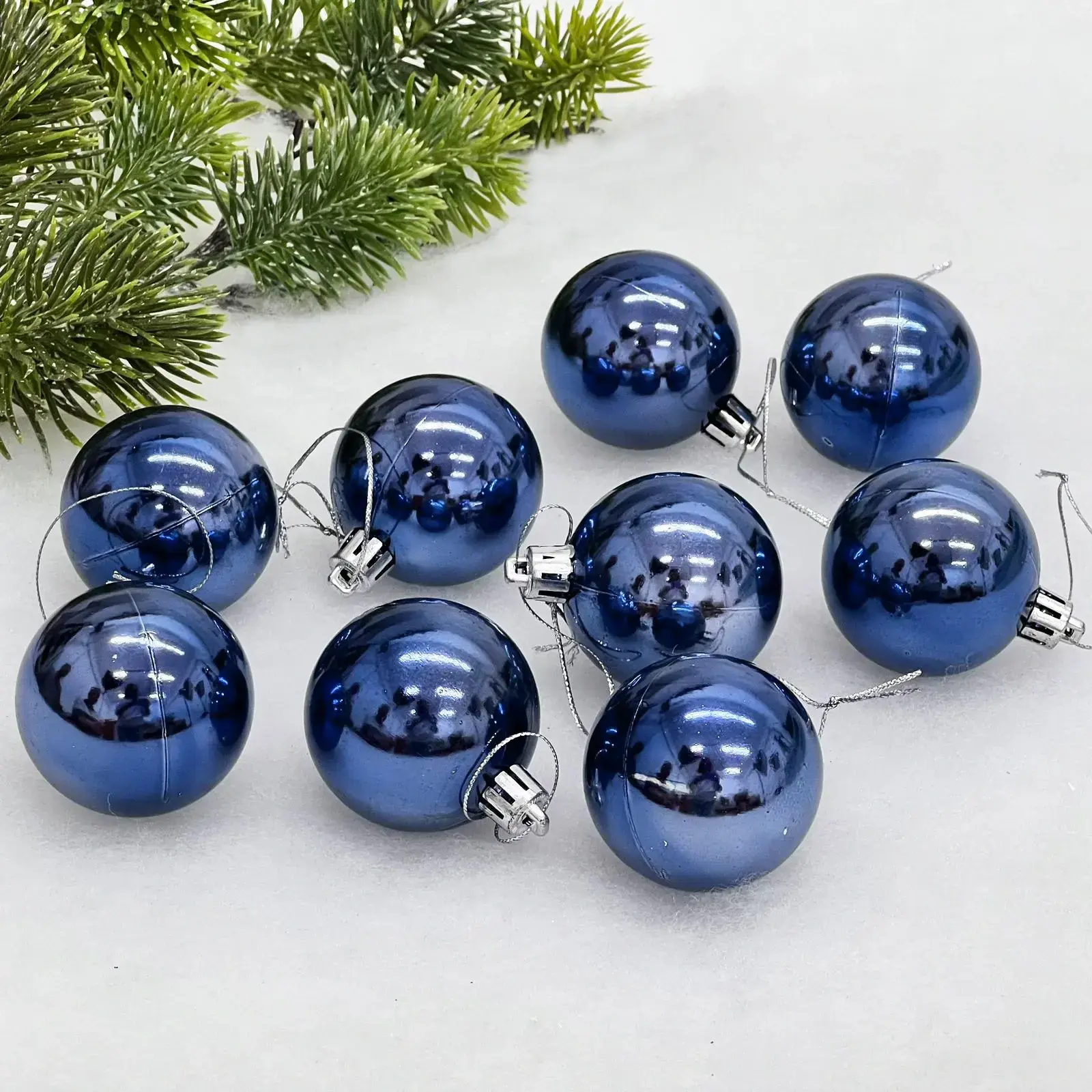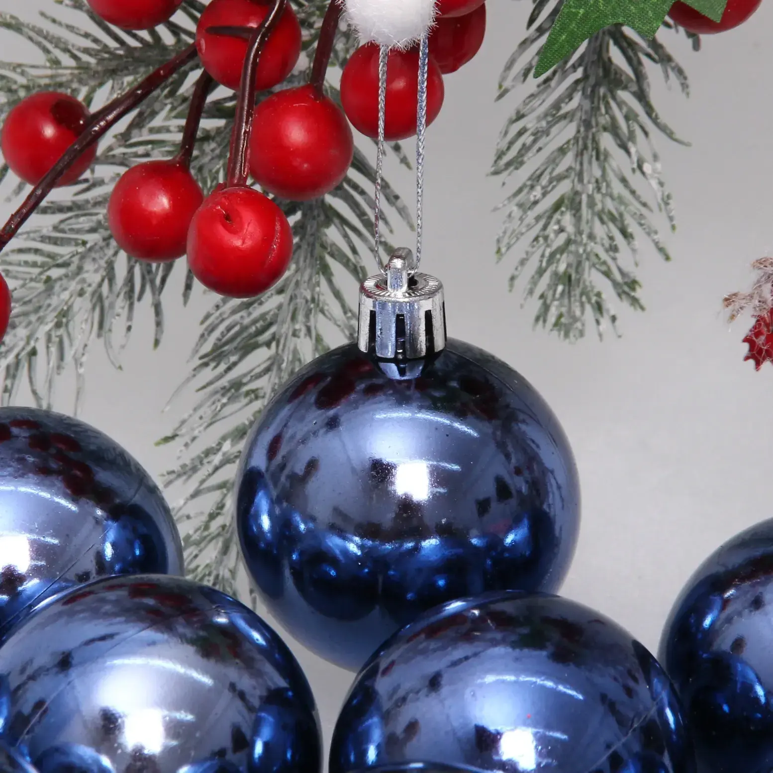 Набор из 24 сапфировых шаров с металлическим блеском станет идеальным решением для оформления новогодней ели и интерьера. Глянцевая поверхность эффектно отражает свет гирлянд, создавая волшебное мерцание в праздничную ночь.