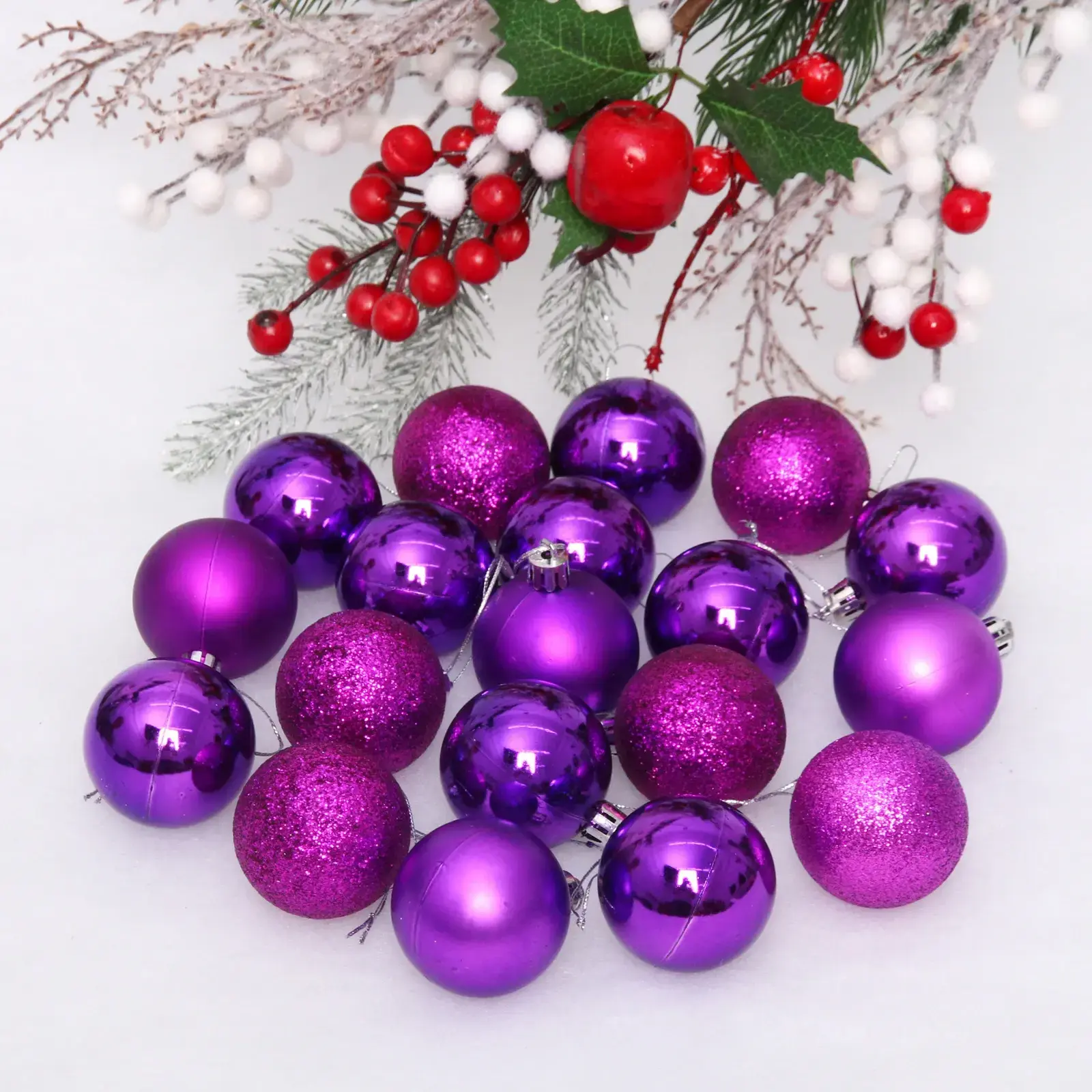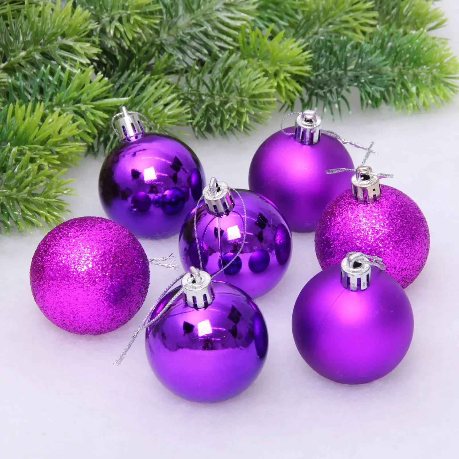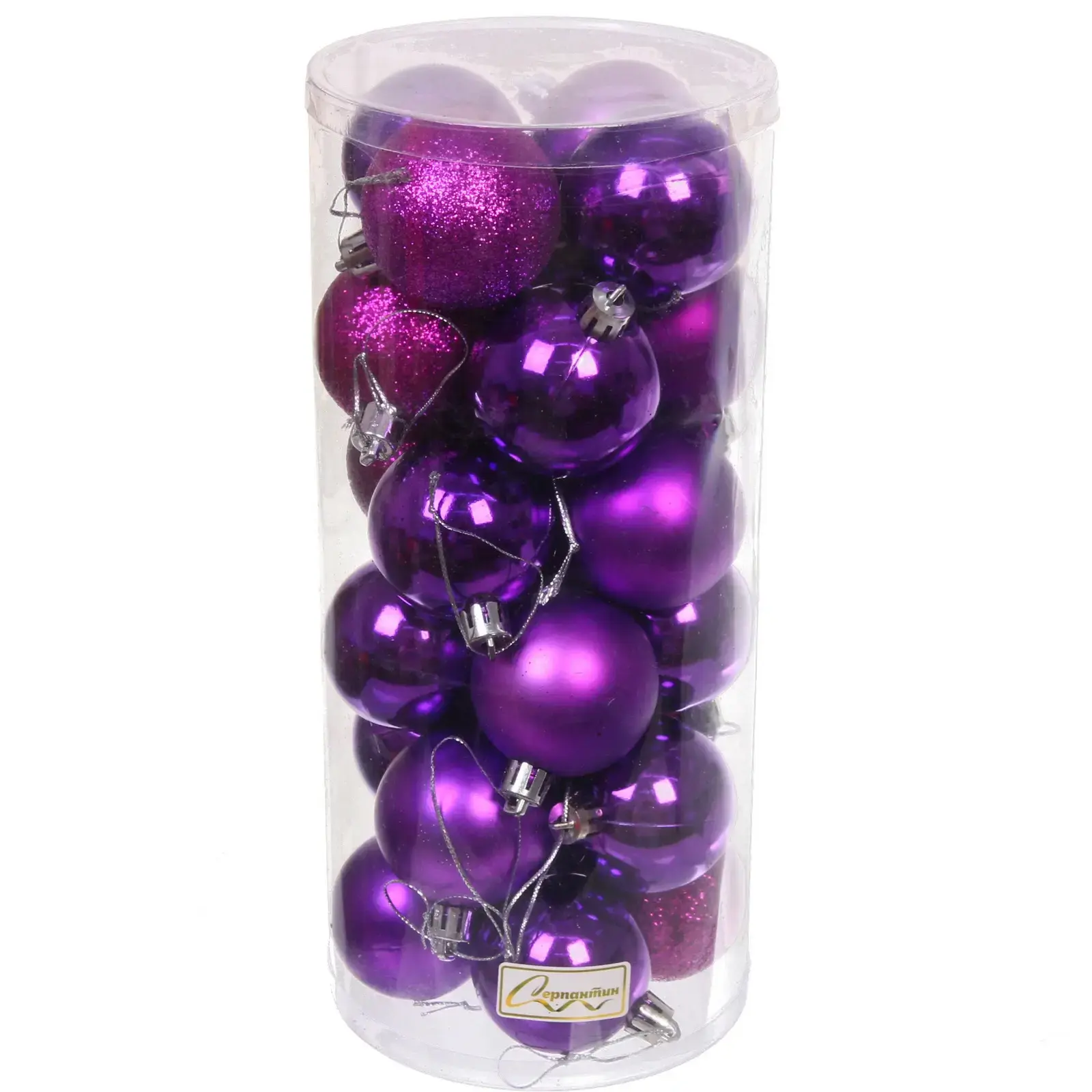 Новогодние шары — это не просто украшения, это символы праздника, которые наполняют ваш дом атмосферой волшебства и радости. Набор из 24 фиолетовых шаров диаметром 5 см станет идеальным дополнением к вашему новогоднему декору. Эти шары, выполненные из качественного пластика, отличаются разнообразием текстур: от гладких до блестящих, что позволяет создать уникальный и стильный дизайн вашей елки.