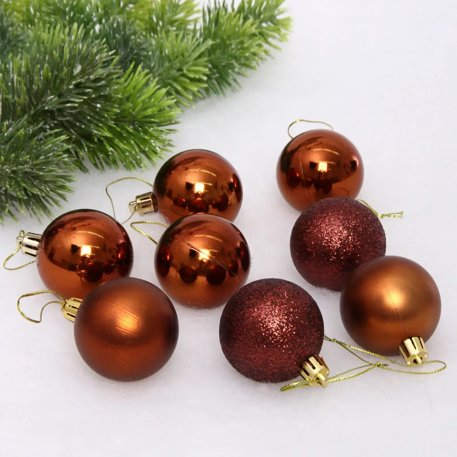 Рассмотрите, как изысканные новогодние шары «Микс фактур» мгновенно преобразят вашу ёлку и создадут атмосферу уюта. Коллекция в стильном шоколадном цвете сочетает три вида поверхности: глянцевую, матовую и текстуру с блестками. Такой ансамбль дарит ощущение тепла, оригинальности и гармонии, делая ваш праздник по-настоящему запоминающимся.