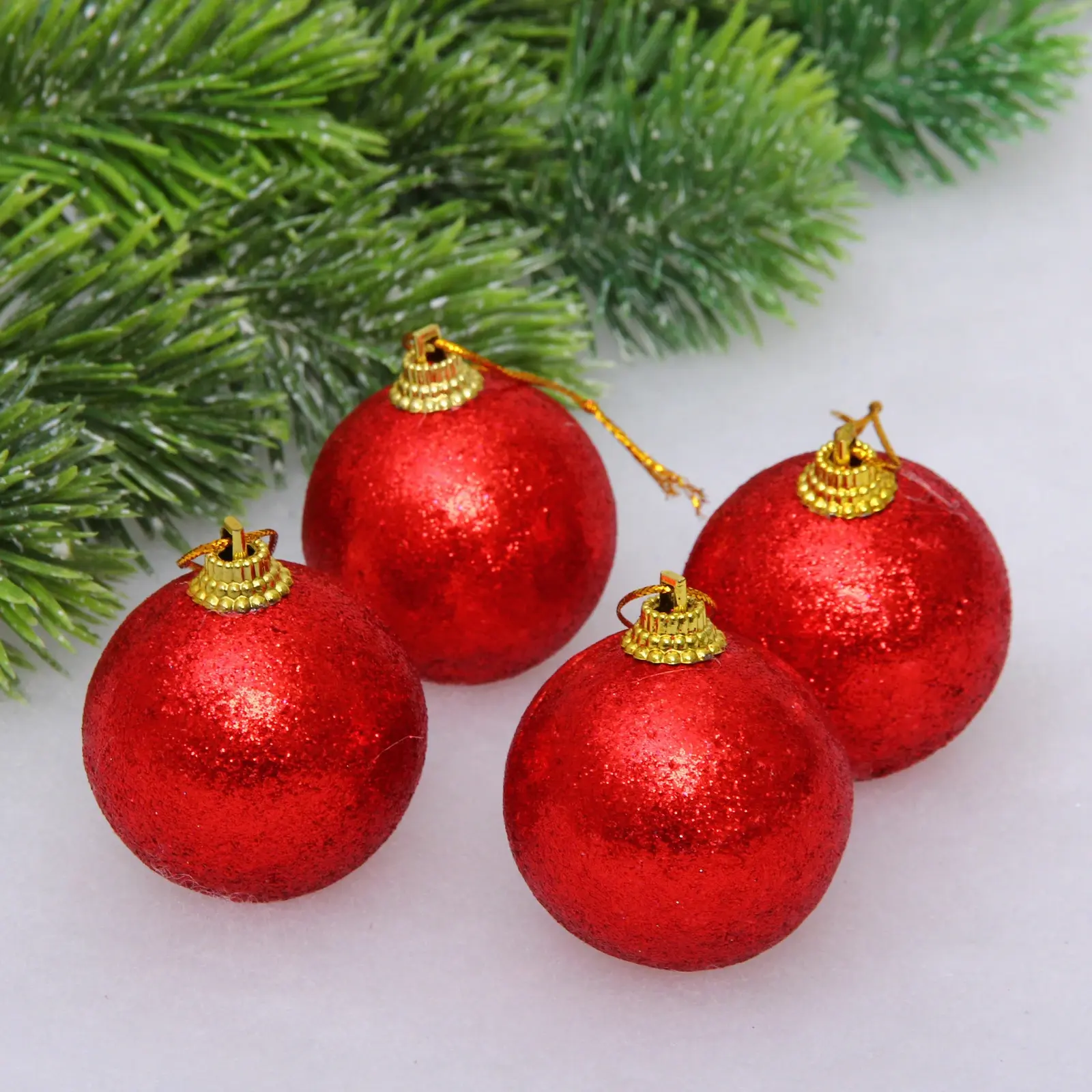 Эти яркие новогодние шары с блестящим напылением добавят волшебства в ваш дом. Они идеально подходят для украшения елки, создавая атмосферу уюта и радости. Каждый шар диаметром 5 см выполнен в насыщенном красном цвете, что делает их универсальными для любого праздничного декора.